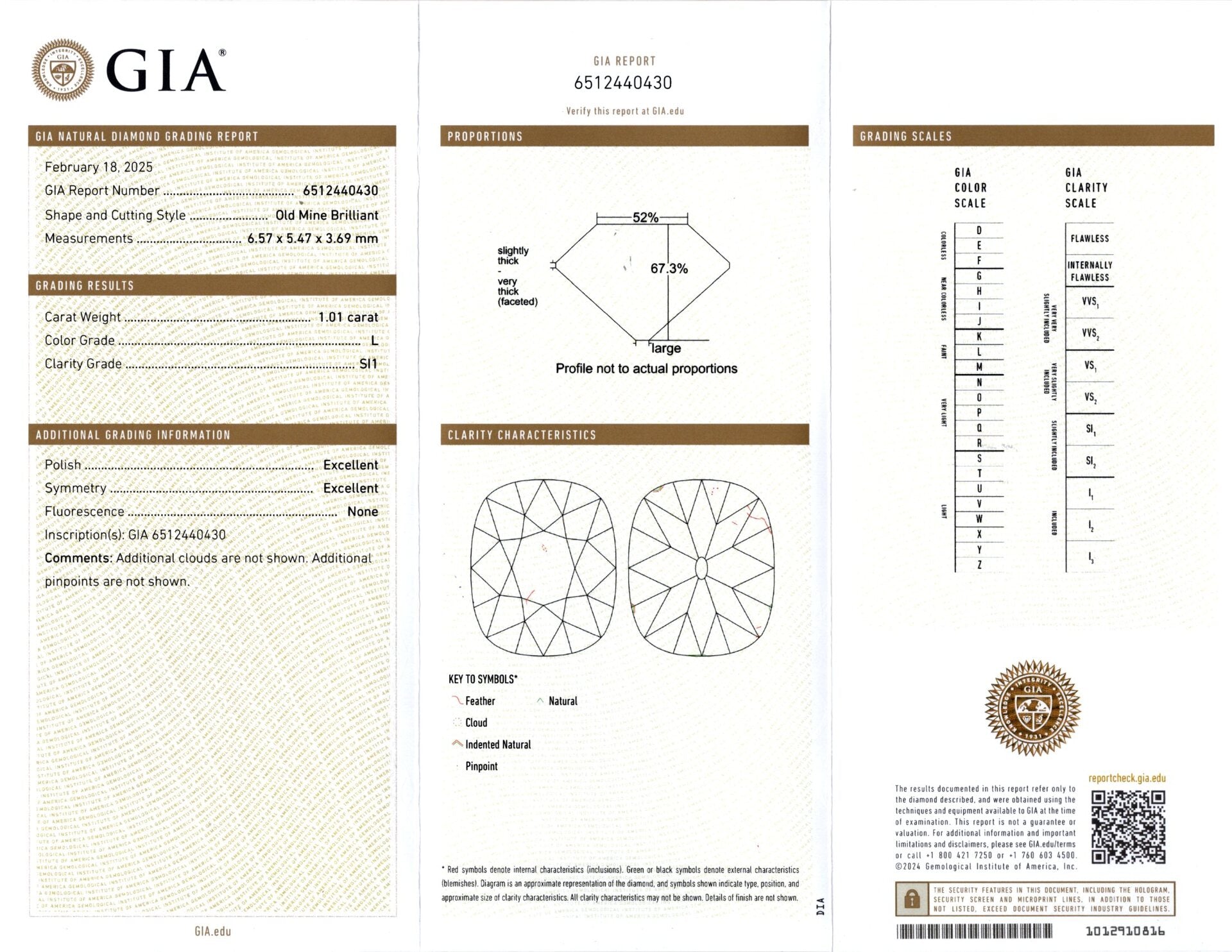 1 CARAT OLD MINE CUT DIAMOND GIA CERTIFIED L SI1 ELONGATED CUSHION BRILLIANT