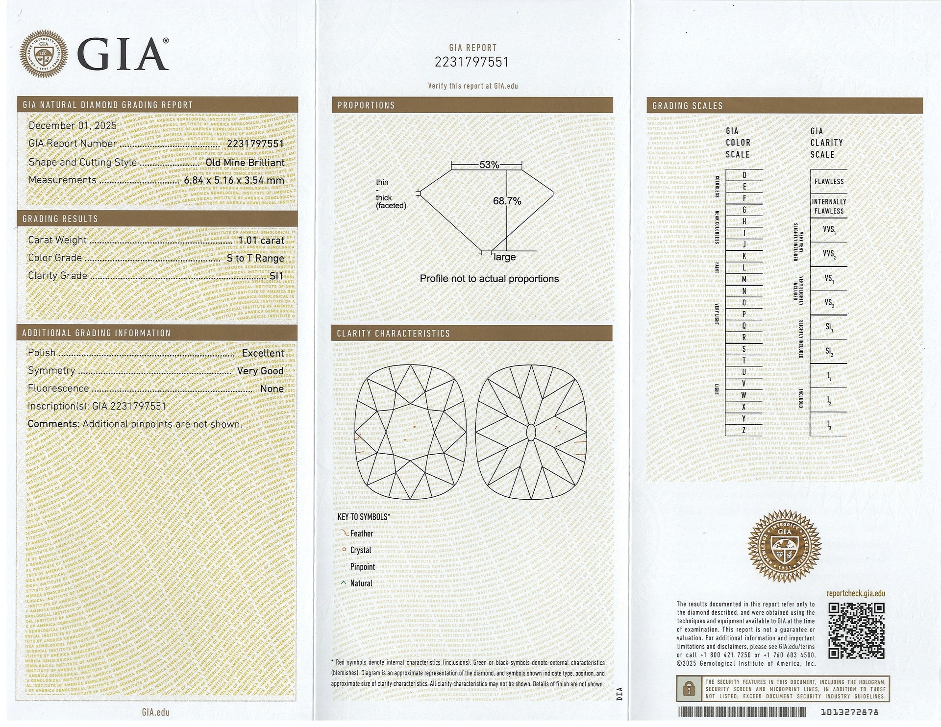 1 CARAT OLD MINE CUT DIAMOND GIA CERTIFIED S-T SI1 ELONGATED CUSHION BRILLIANT