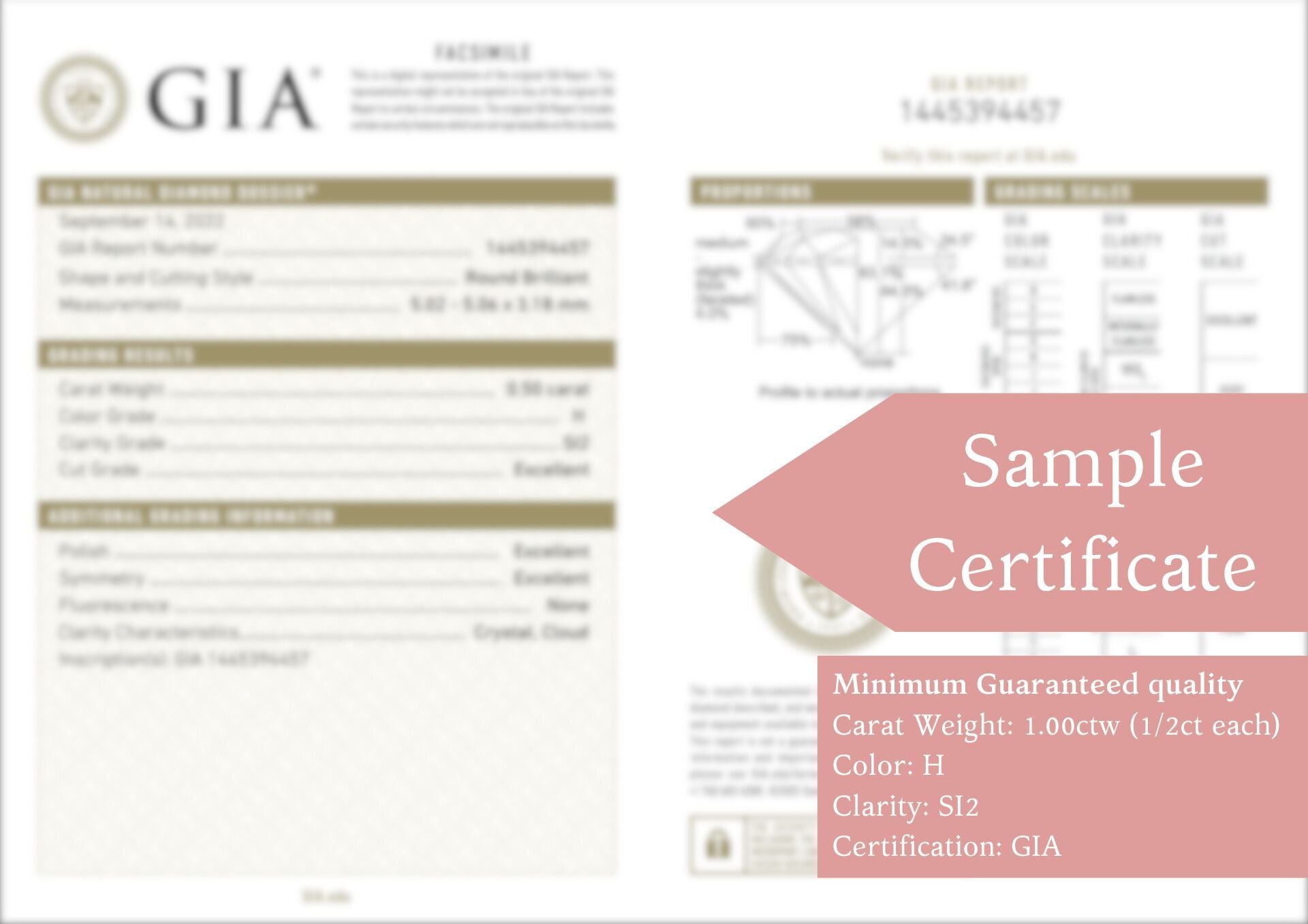 This listing reflects minimum guaranteed quality for the center diamonds. The stones you receive will be the listed quality or better on all stats (carat weight, color, clarity, cut).