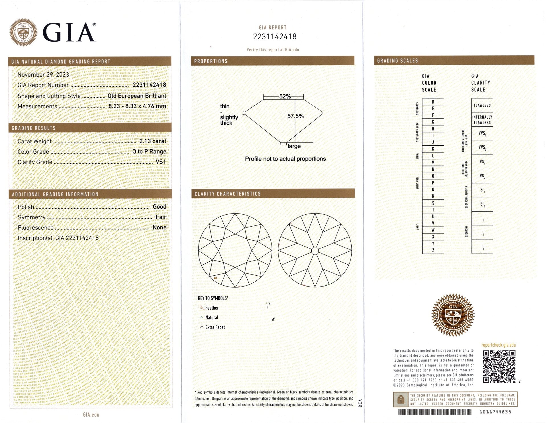 2.13ct OLD EUROPEAN CUT DIAMOND EMERALD RING GIA CERTIFIED VINTAGE STYLE HALO