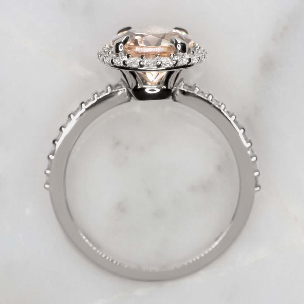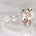 2.3c OVAL CUT HALO MORGANITE .40c DIAMOND ENGAGEMENT RING PINK PLATINUM NATURAL