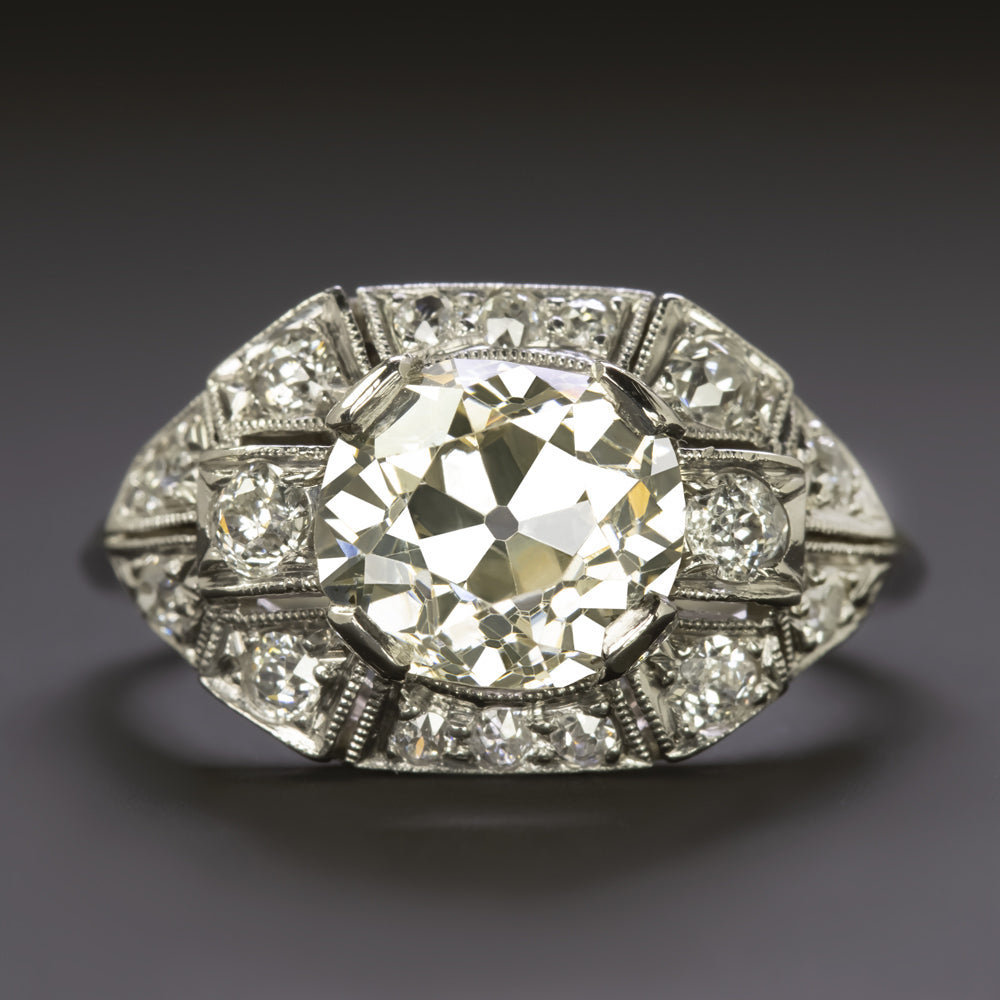 2.5ct OLD MINE CUT DIAMOND COCKTAIL RING VINTAGE PALLADIUM RETRO NATURAL ESTATE