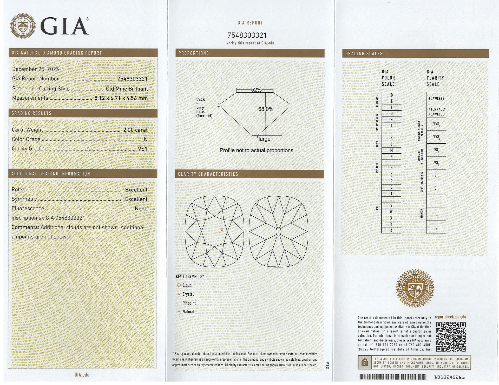 2 CARAT OLD MINE CUT DIAMOND GIA CERTIFIED N VS1 CUSHION BRILLIANT ELONGATED 2ct