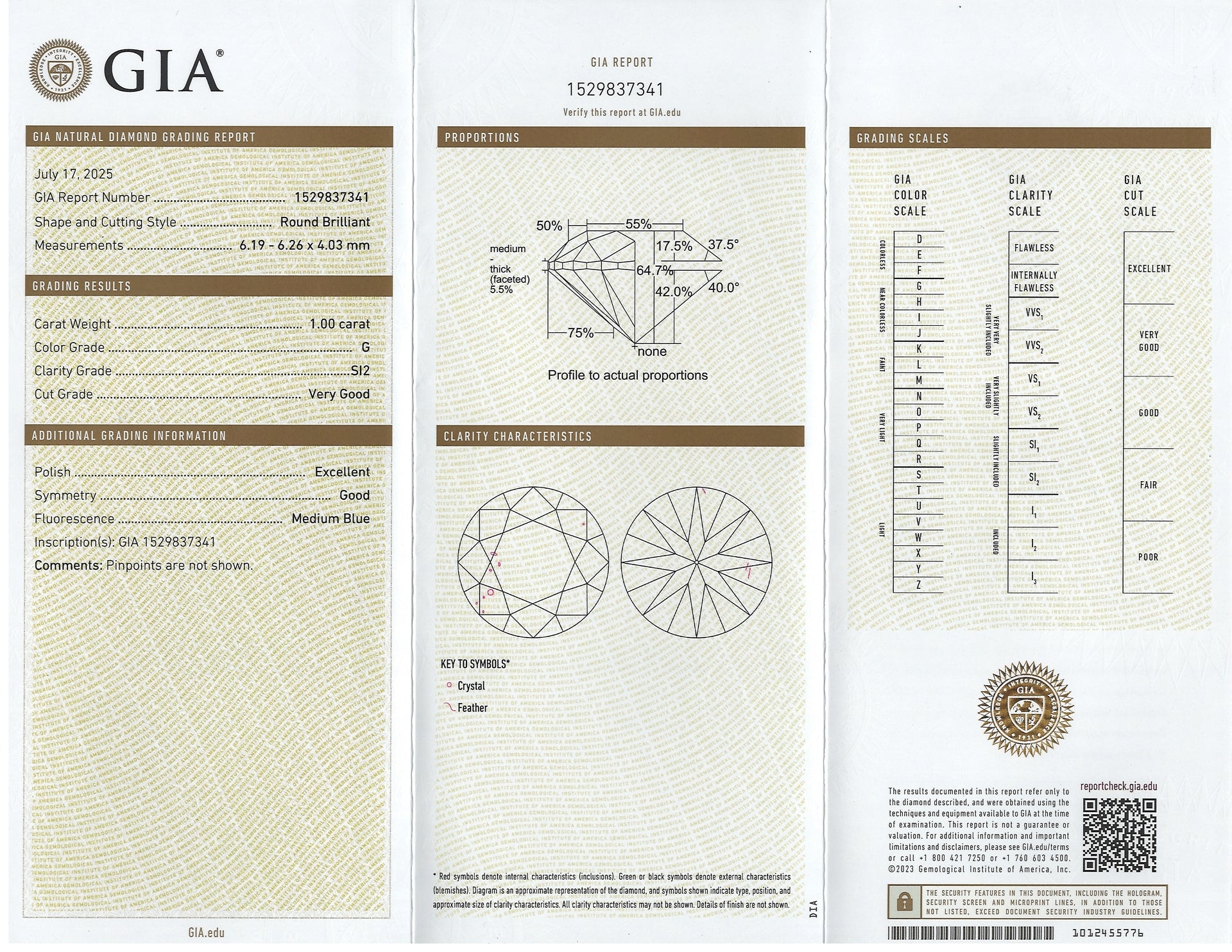 2ct GIA CERTIFIED DIAMOND STUD EARRINGS VERY GOOD ROUND CUT G SI2 NATURAL PAIR