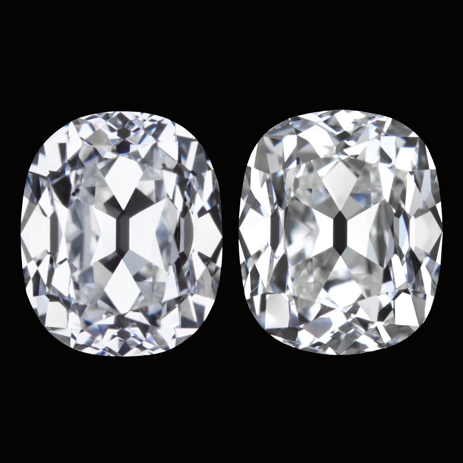 - Antique reproduction old mine cuts. Gorgeous elongated cushion brilliant shape.