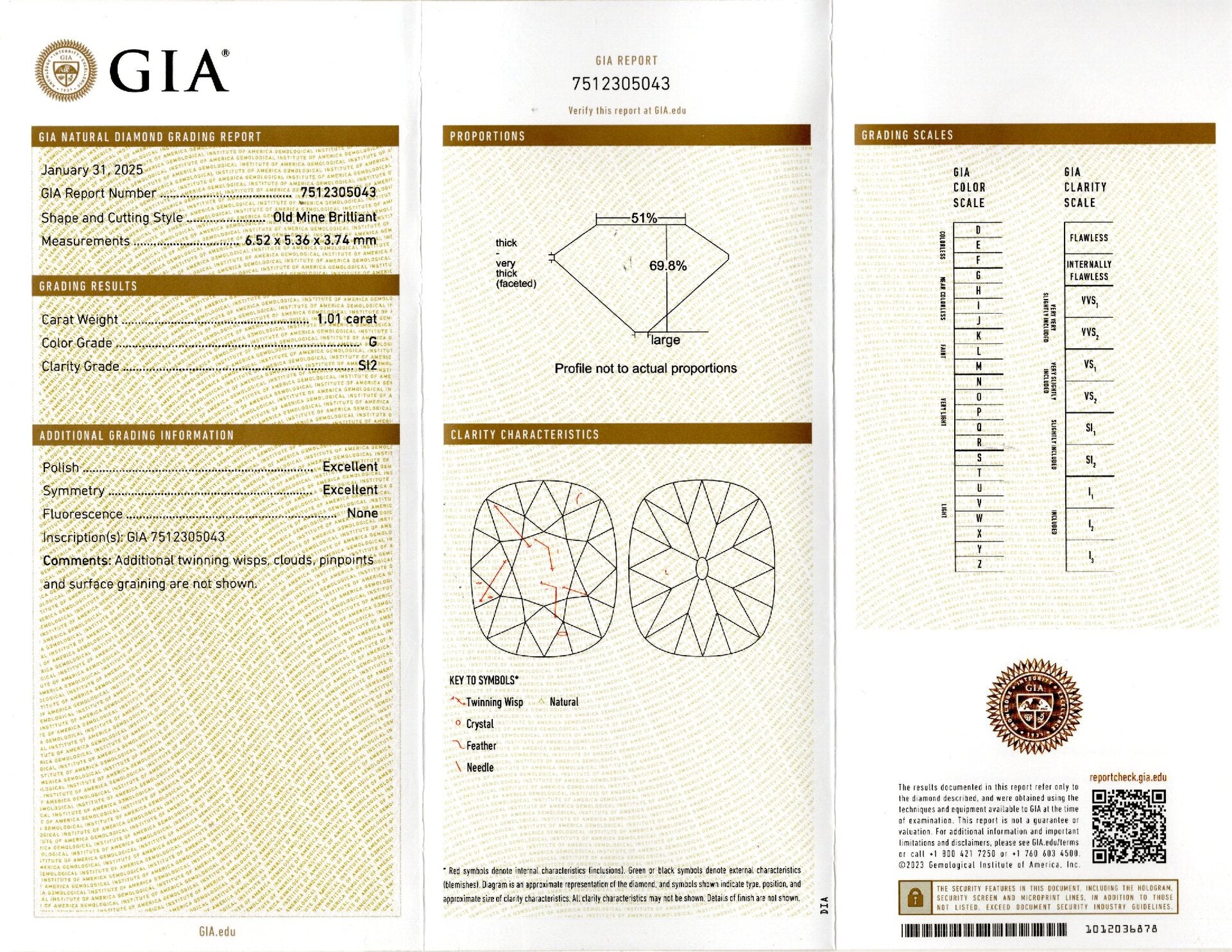 2ct OLD MINE CUT DIAMOND STUD EARRINGS GIA CERTIFIED G SI1-SI2 CUSHION BRILLIANT