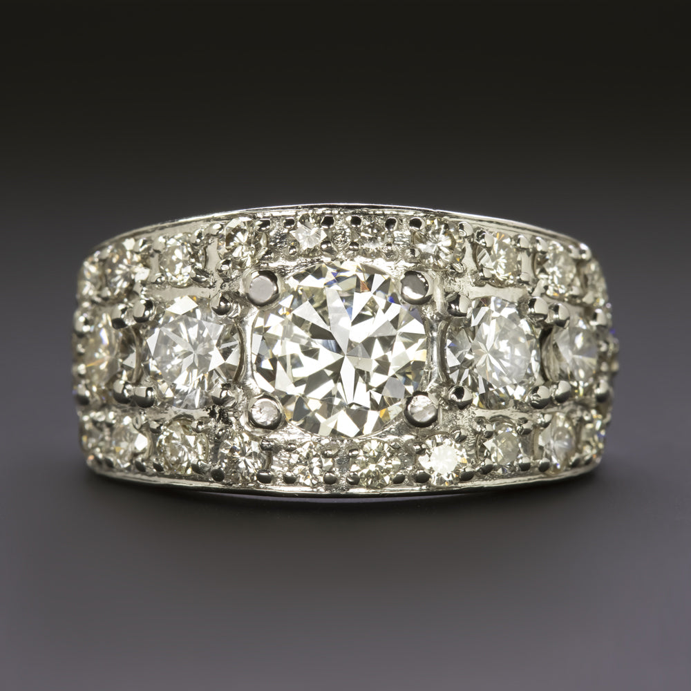 3.22ct VINTAGE DIAMOND COCKTAIL RING WIDE BAND NATURAL 14k WHITE GOLD PAVE 1960s
