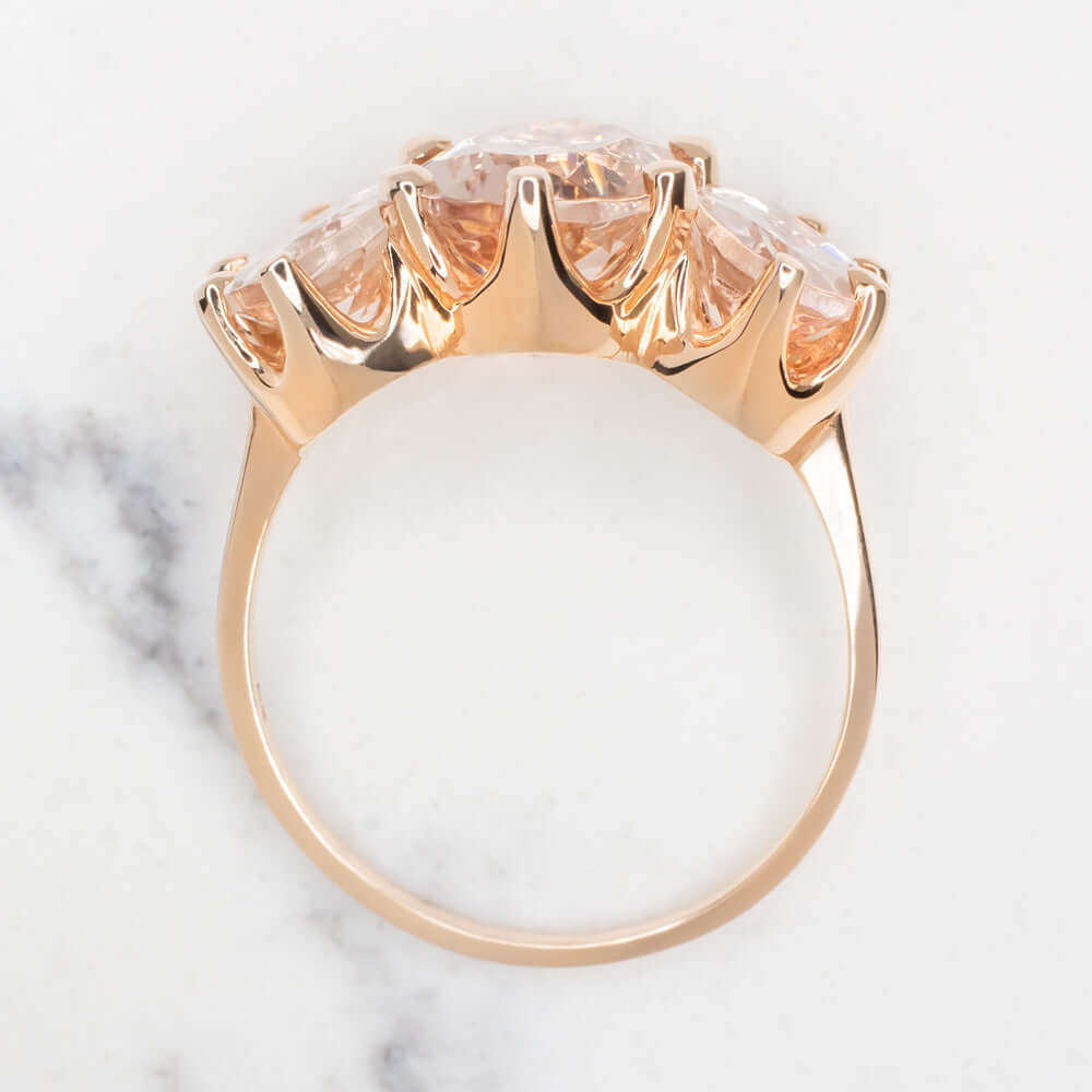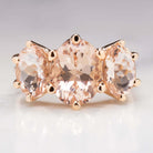 4.5ct MORGANITE 3 STONE RING OVAL CUT SHAPE PINK PEACH 10K ROSE GOLD RIGHT HAND