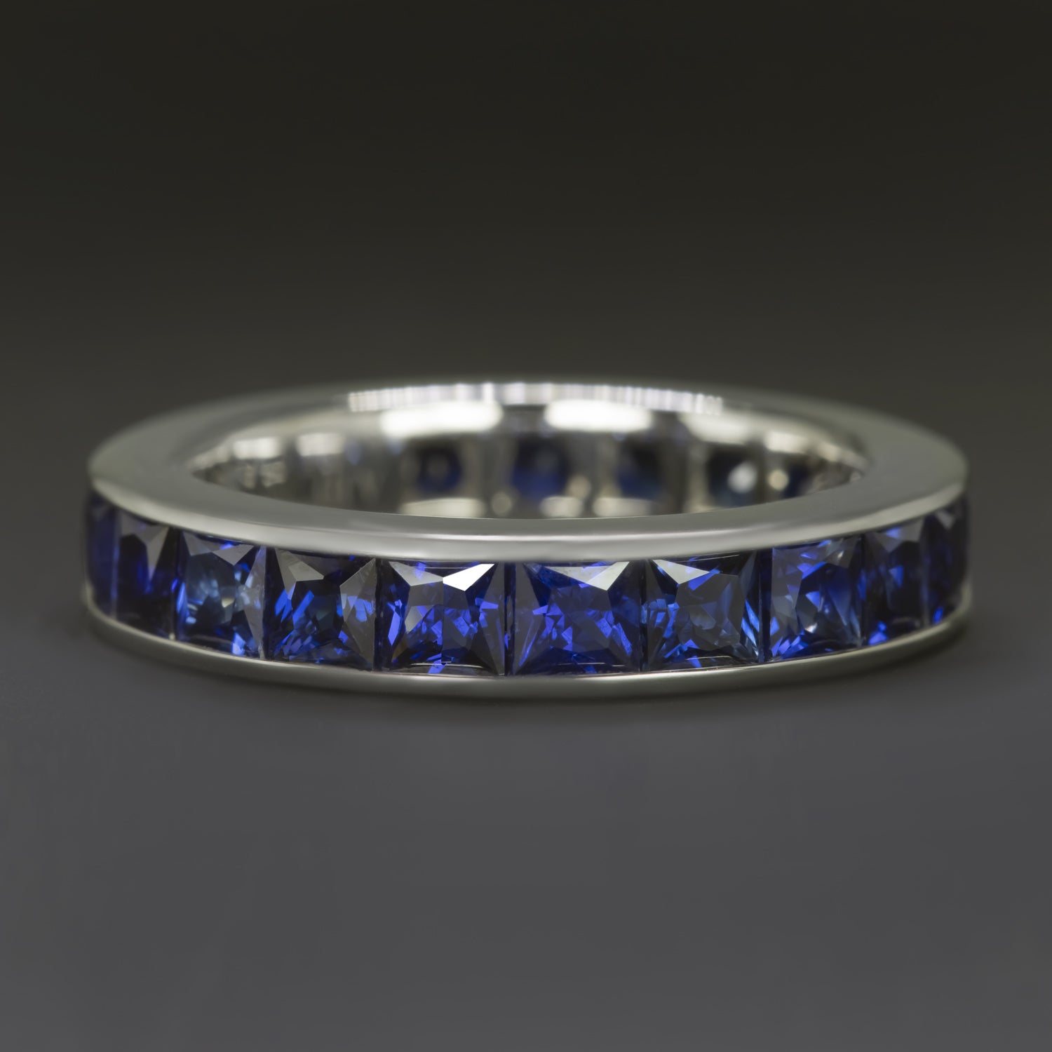 This sapphire eternity band is high quality, satisfyingly substantial, and has a sleek and sophisticated look!