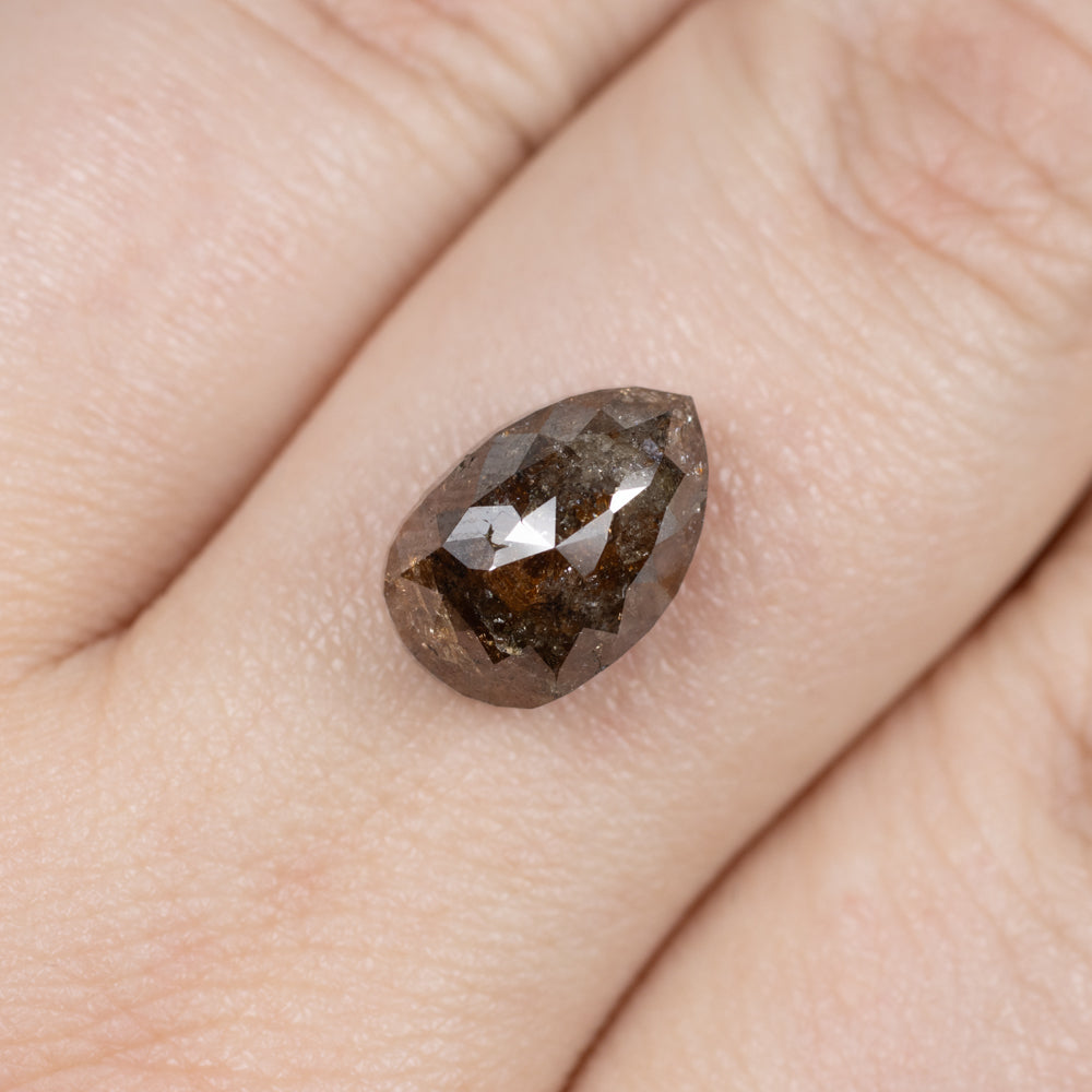 5.76ct NATURAL DIAMOND PEAR SHAPE ROSE CUT RUSTIC SALT AND PEPPER TEARDROP LOOSE