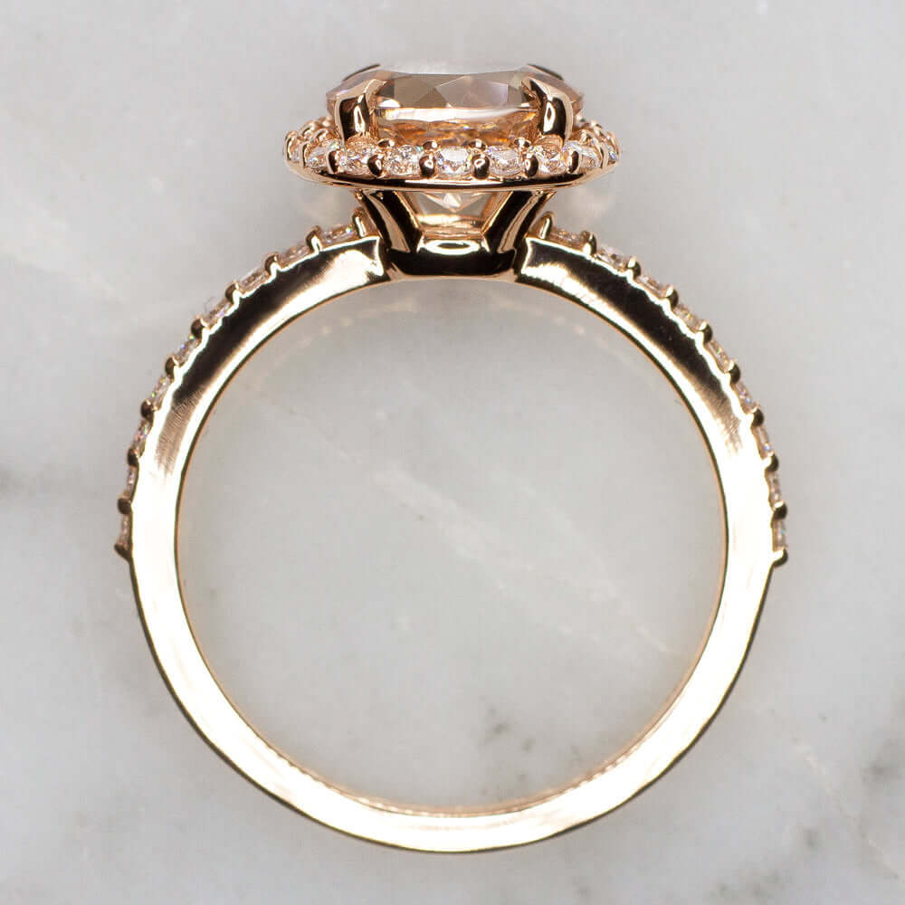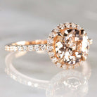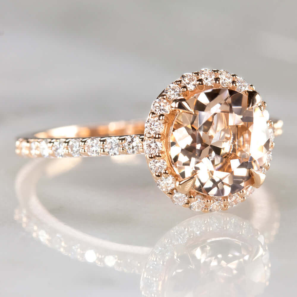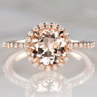 8mm ROUND CUT MORGANITE 0.38ct DIAMOND HALO ENGAGEMENT RING 10k GOLD PEACH PINK