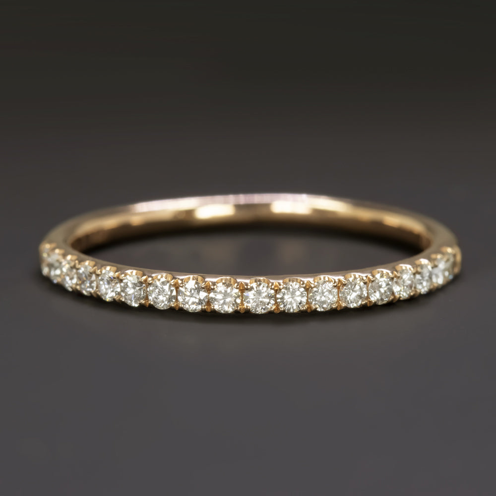DIAMOND WEDDING BAND STACKING RING 14k ROSE GOLD NATURAL THIN DAINTY CLASSIC