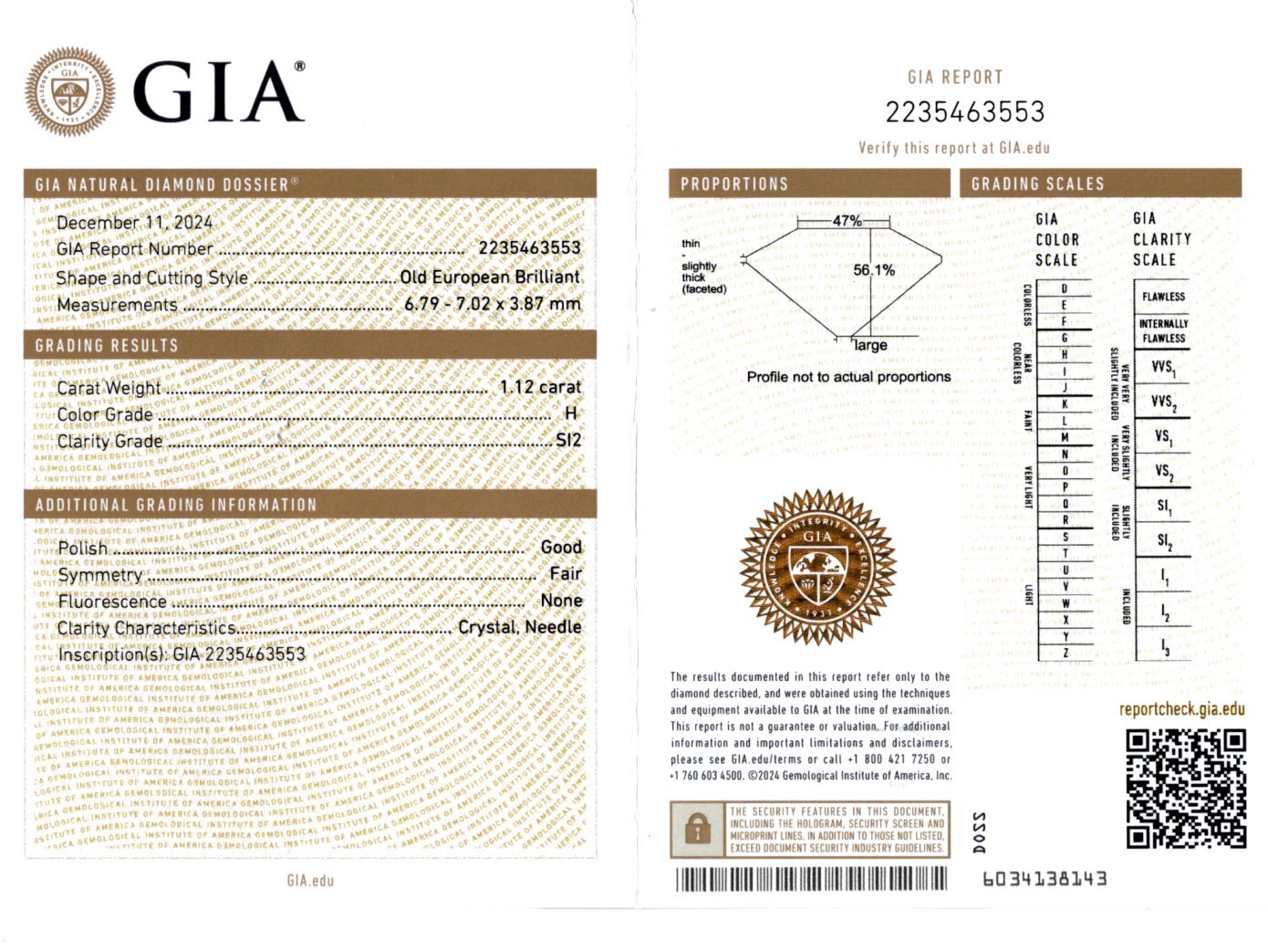 GIA CERTIFIED OLD EUROPEAN CUT DIAMOND EMERALD ENGAGEMENT RING VINTAGE STYLE