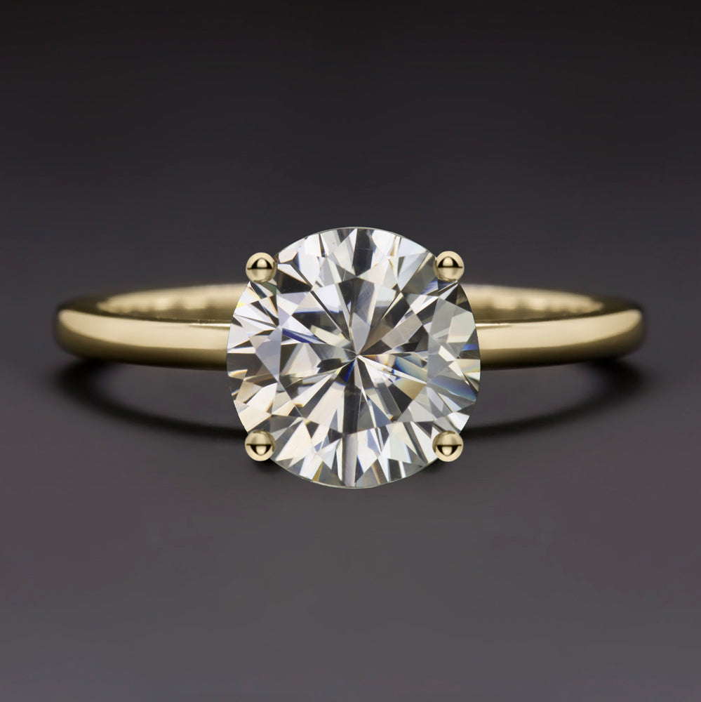 MOISSANITE 10k YELLOW GOLD SOLITAIRE RING ROUND BRILLIANT CUT CLASSIC SIMPLE