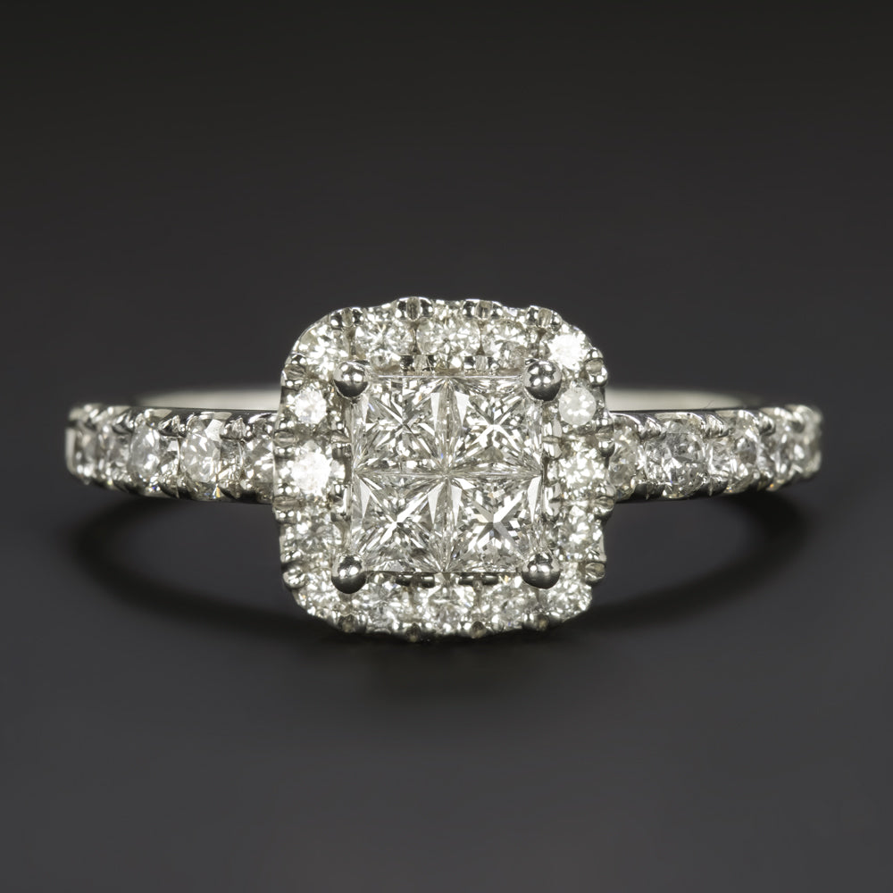 NATURAL DIAMOND COCKTAIL RING CUSHION SHAPE HALO ILLUSION CLUSTER 14k WHITE GOLD