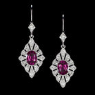 RHODOLITE GARNET DIAMOND DANGLE EARRINGS VINTAGE STYLE ART DECO HALO PLATINUM