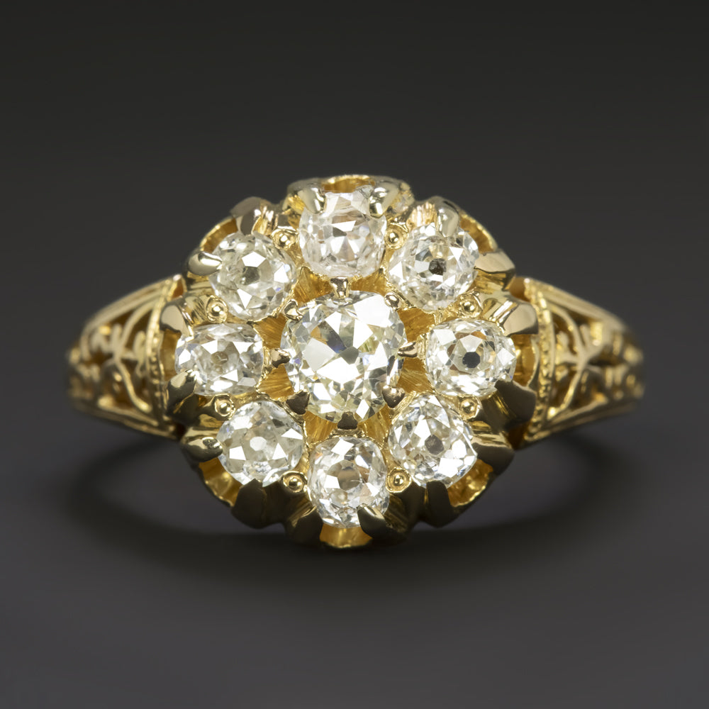 VICTORIAN DIAMOND CLUSTER RING ANTIQUE OLD MINE CUT 6.7gm 18k YELLOW GOLD ESTATE