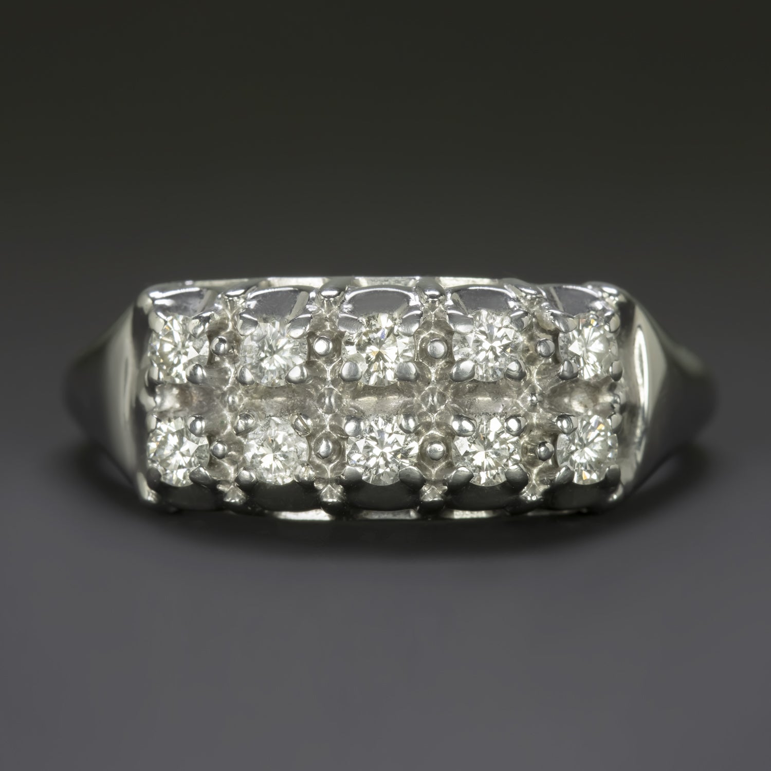 VINTAGE DIAMOND 2 ROW BAND 14k WHITE GOLD RING 1/2ct NATURAL RETRO COCKTAIL