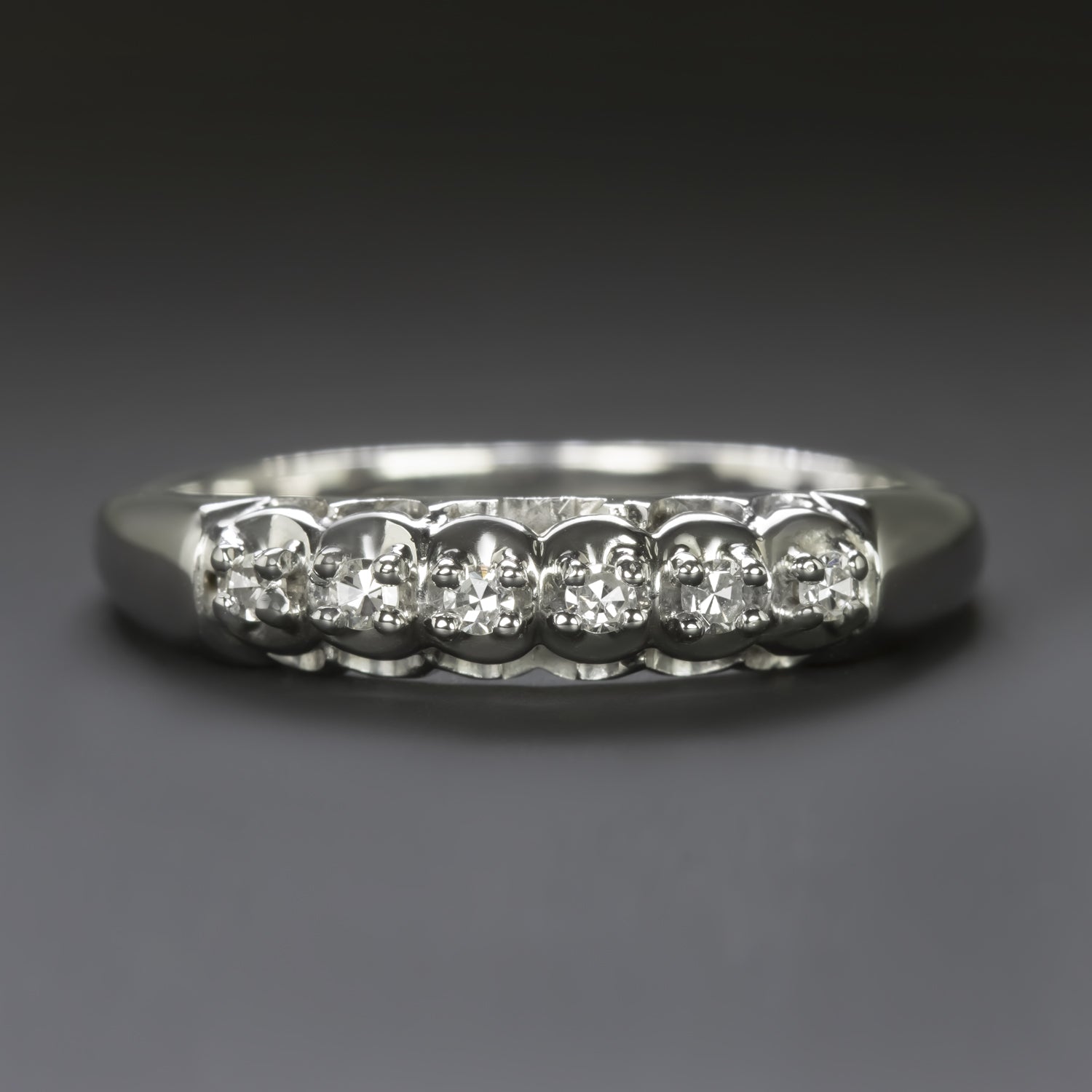 VINTAGE NATURAL DIAMOND WEDDING RING 14k WHITE GOLD STACKING BAND CLASSIC ESTATE