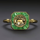 VINTAGE STYLE EMERALD HALO ENGAGEMENT RING SETTING ROUND BEZEL MOUNT YELLOW GOLD