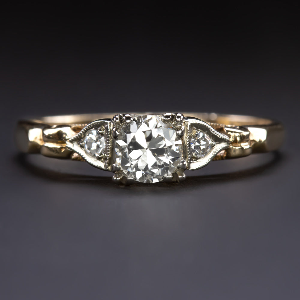 1/3ct H VS2 OLD EUROPEAN CUT DIAMOND VINTAGE ENGAGEMENT RING 14k TWO TONE GOLD