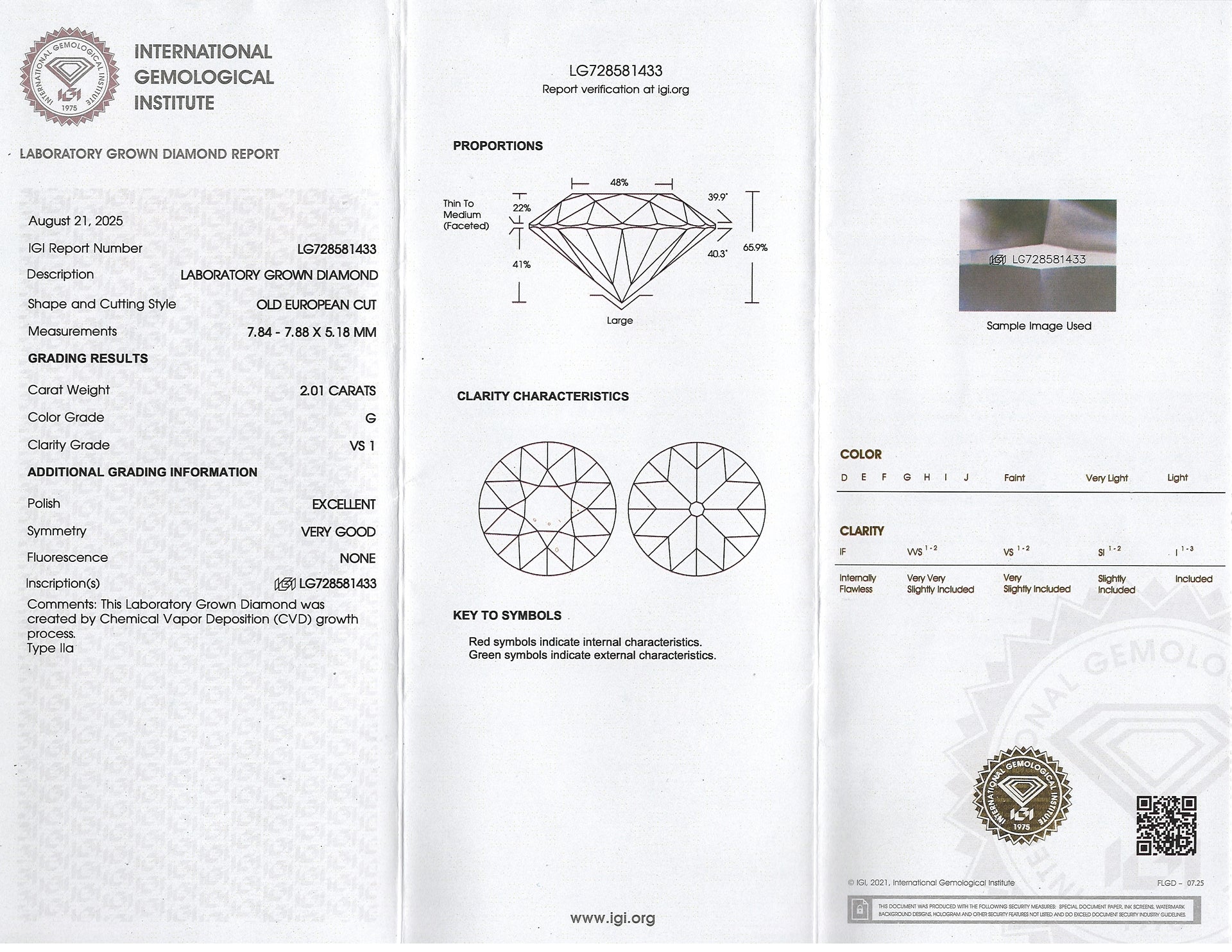 2 CARAT OLD EUROPEAN CUT LAB CREATED DIAMOND CERTIFIED G VS1 VINTAGE STYLE