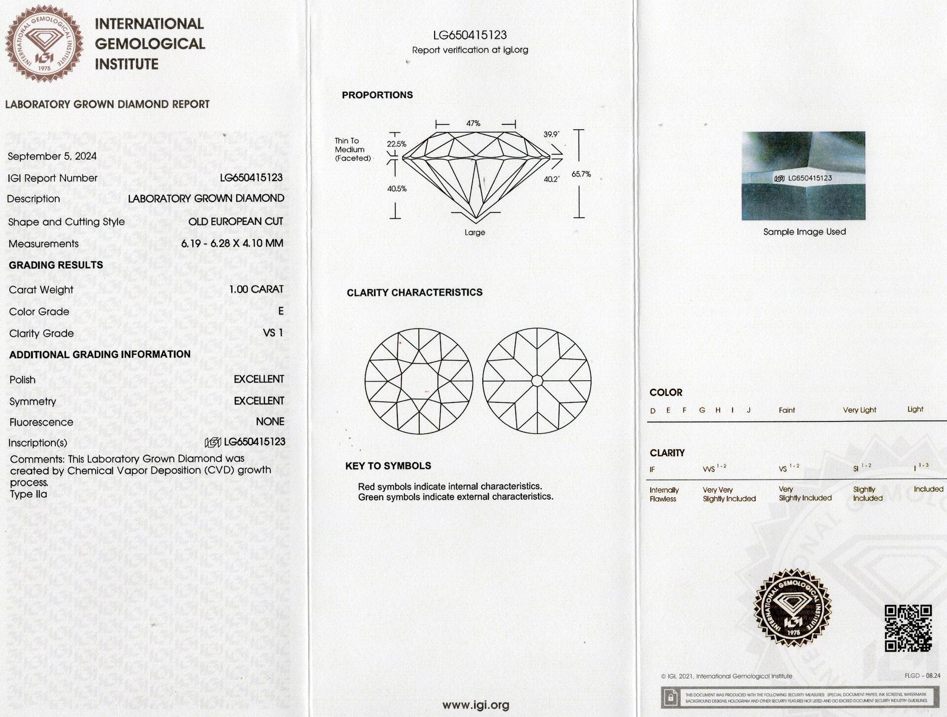 2 CARAT OLD EUROPEAN CUT LAB CREATED DIAMOND STUD EARRINGS CERTIFIED E VS1 PAIR