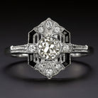 DIAMOND BLACK ONYX RING OLD EUROPEAN CUT ART DECO VINTAGE STYLE 14K WHITE GOLD