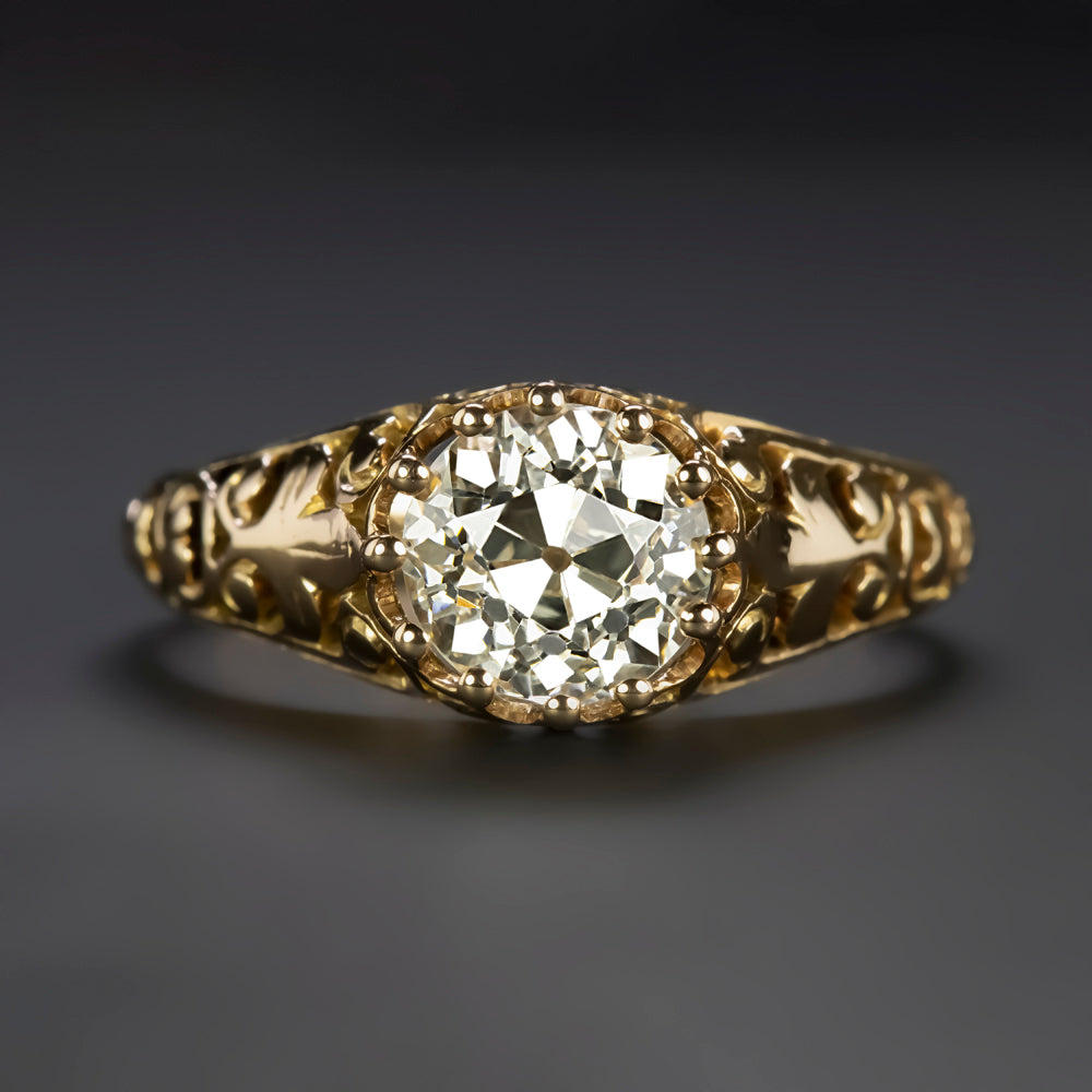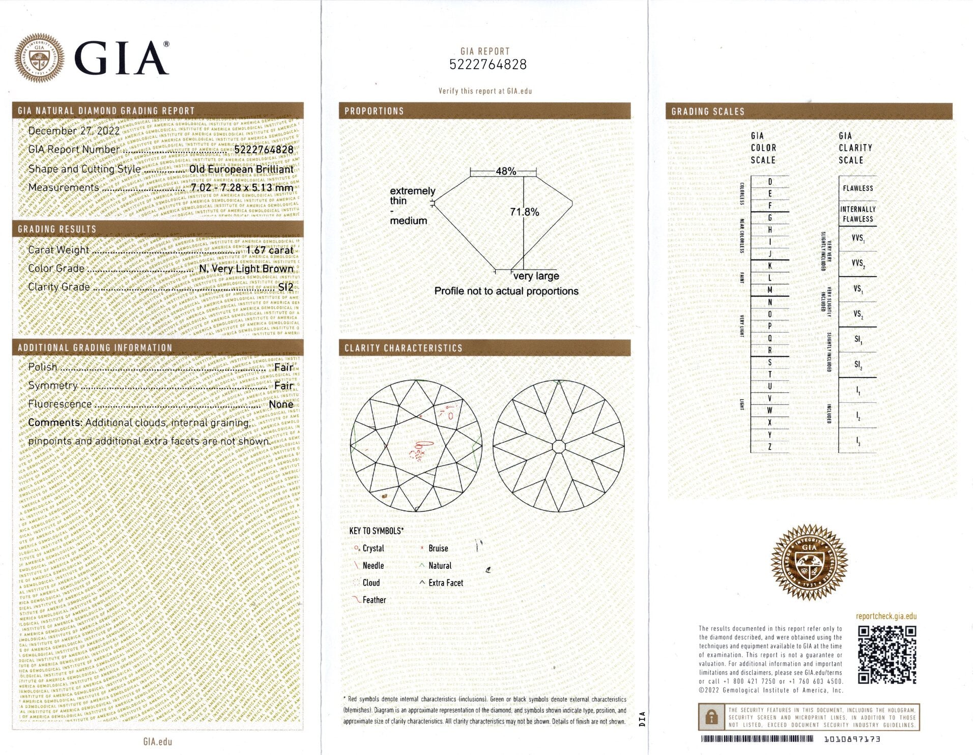 VINTAGE GIA CERTIFIED 1.67ct DIAMOND ENGAGEMENT RING OLD EUROPEAN CUT ROSE GOLD