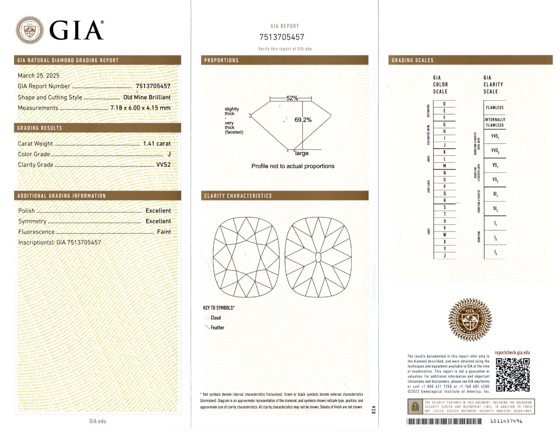 1.41ct OLD MINE CUT DIAMOND GIA CERTIFIED J VVS2 ELONGATED CUSHION BRILLIANT