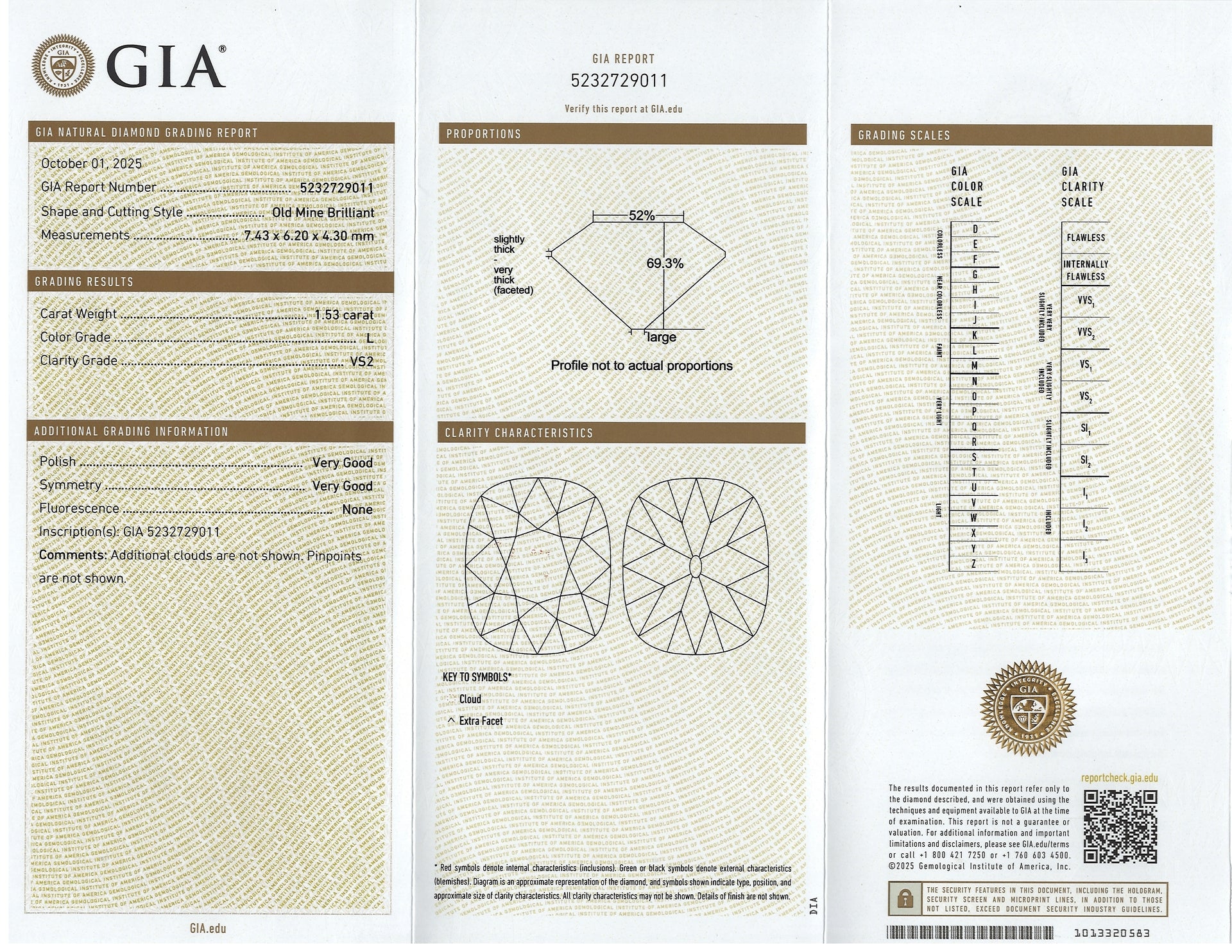 1.5 CARAT OLD MINE CUT DIAMOND GIA CERTIFIED L VS2 ELONGATED CUSHION BRILLIANT