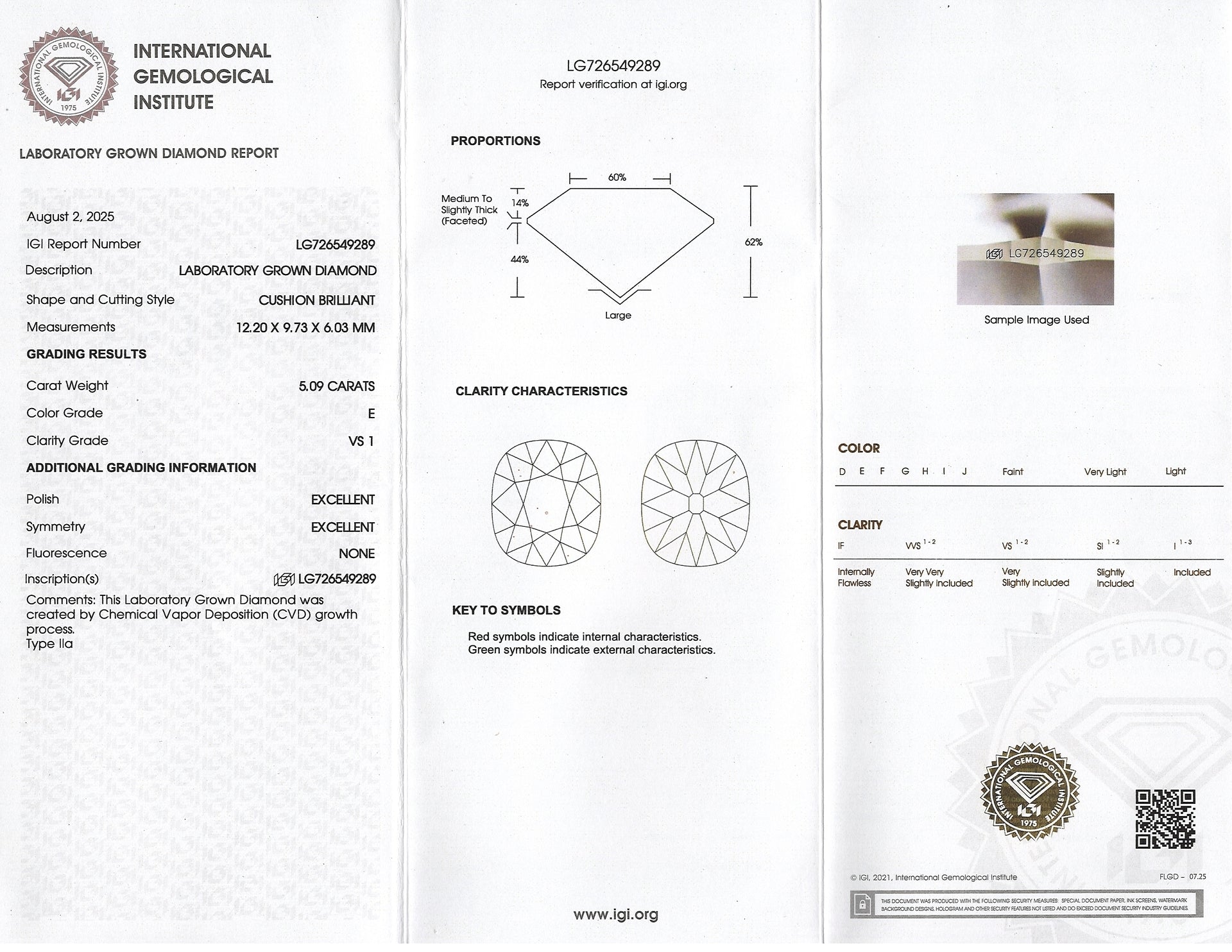 5.09ct OLD MINE CUT LAB CREATED DIAMOND CERTIFIED E VS1 CUSHION BRILLIANT 5ct
