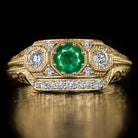NATURAL EMERALD DIAMOND ART DECO RING VINTAGE STYLE YELLOW GOLD GREEN COCKTAIL