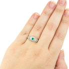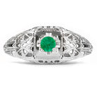 EMERALD STERLING SILVER VINTAGE STYLE COCKTAIL RING FILIGREE PROMISE NATURAL