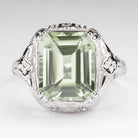 GREEN AMETHYST STERLING SILVER VINTAGE STYLE RING ART DECO EMERALD CUT FILIGREE