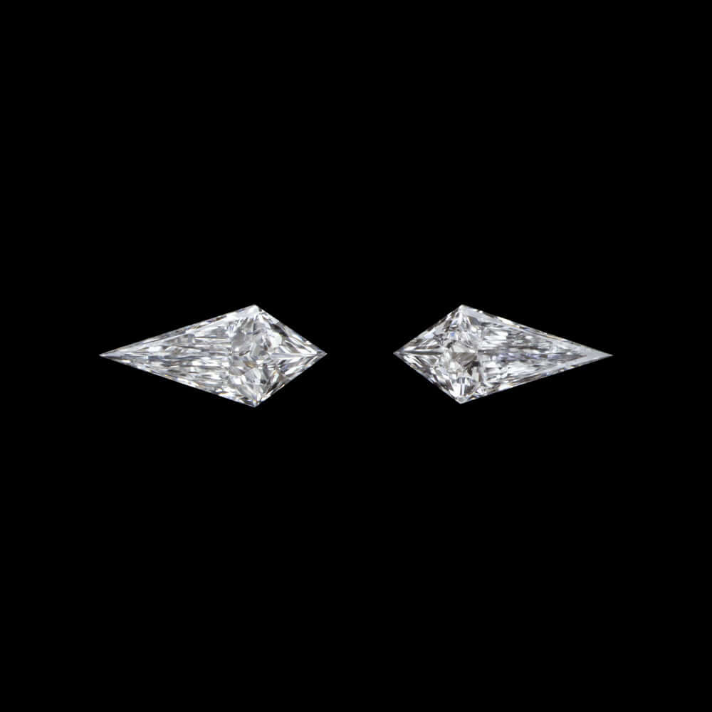 The diamonds are being sold loose, but they can be mounted upon request. With their charming kite shape, they would be perfect to accent a larger centerpiece in a three stone ring or as part of a more elaborate design. We would love to share our ideas for custom designs, so please don’t hesitate to inquire! It is rare to find matched diamonds with this cut, so make them yours before they’re snatched up!