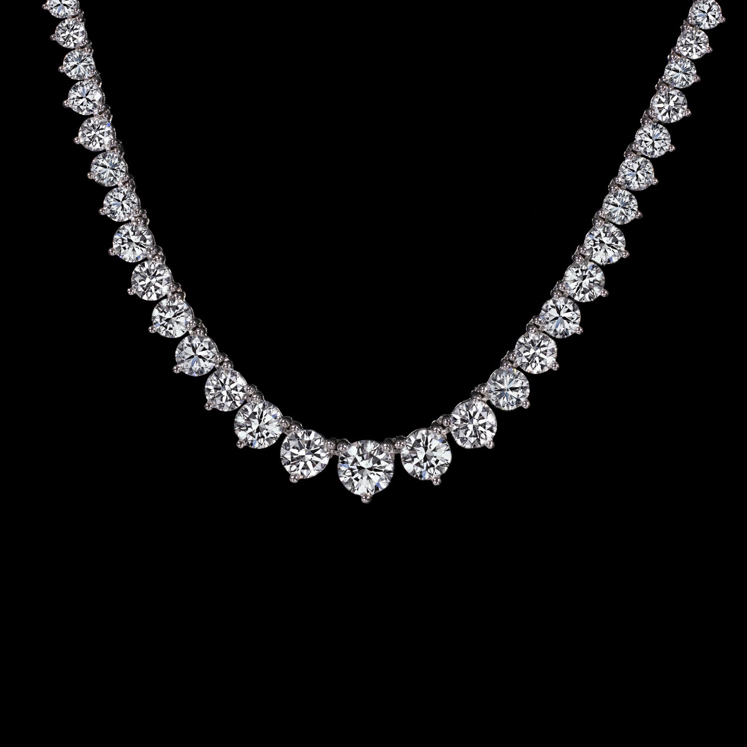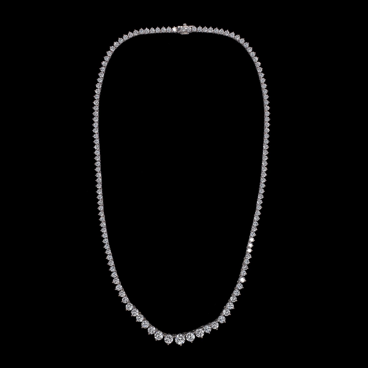 16ct LAB CREATED DIAMOND RIVIERA NECKLACE 18g 14K WHITE GOLD ROUND CUT TENNIS