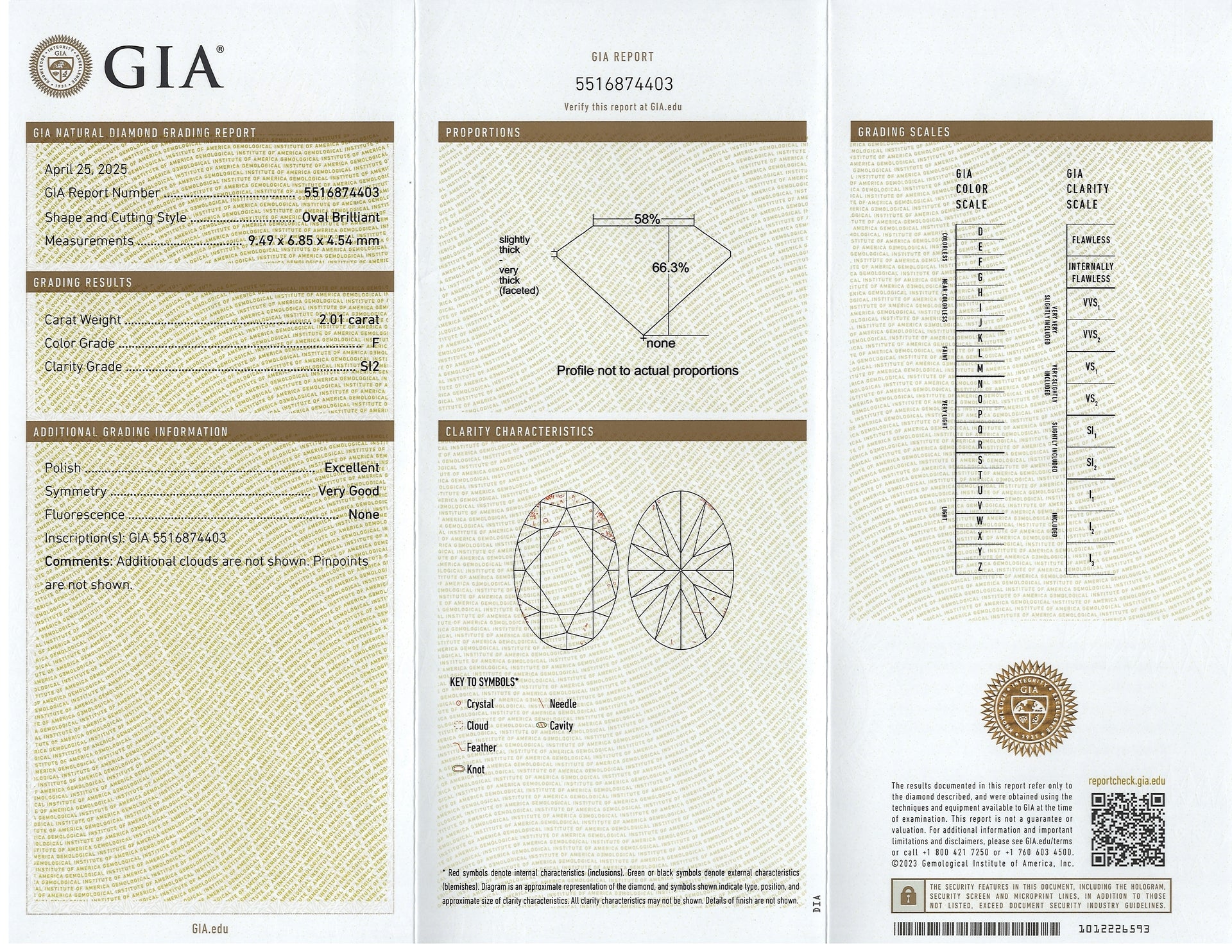 2 CARAT OVAL CUT DIAMOND GIA CERTIFIED F SI2 LOOSE STONE ENGAGEMENT NATURAL