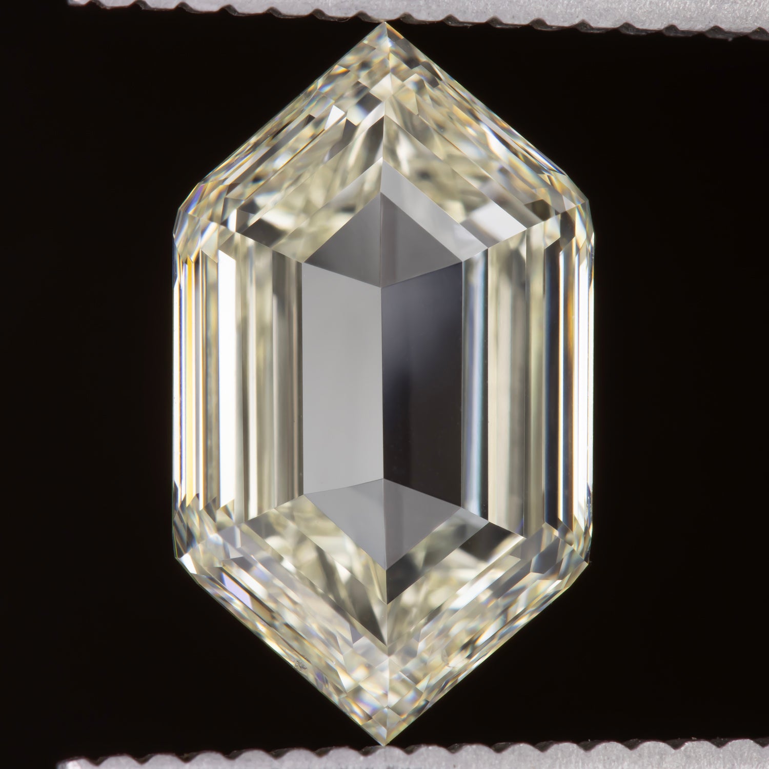 - Rare and unique elongated hexagon shape with broad pavilion facets similar to a portrait cut!