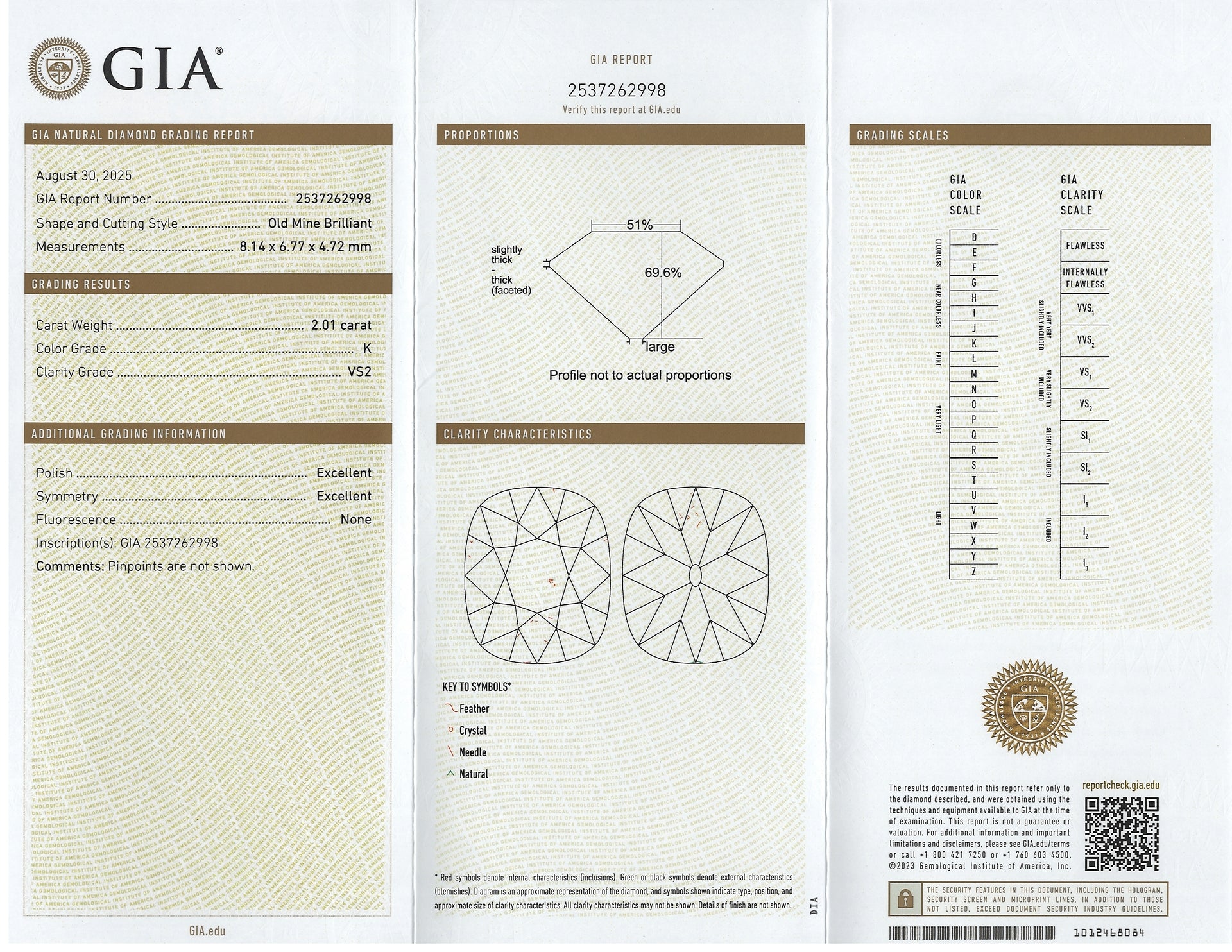 2 CARAT OLD MINE CUT DIAMOND GIA CERTIFIED K VS2 ELONGATED CUSHION BRILLIANT