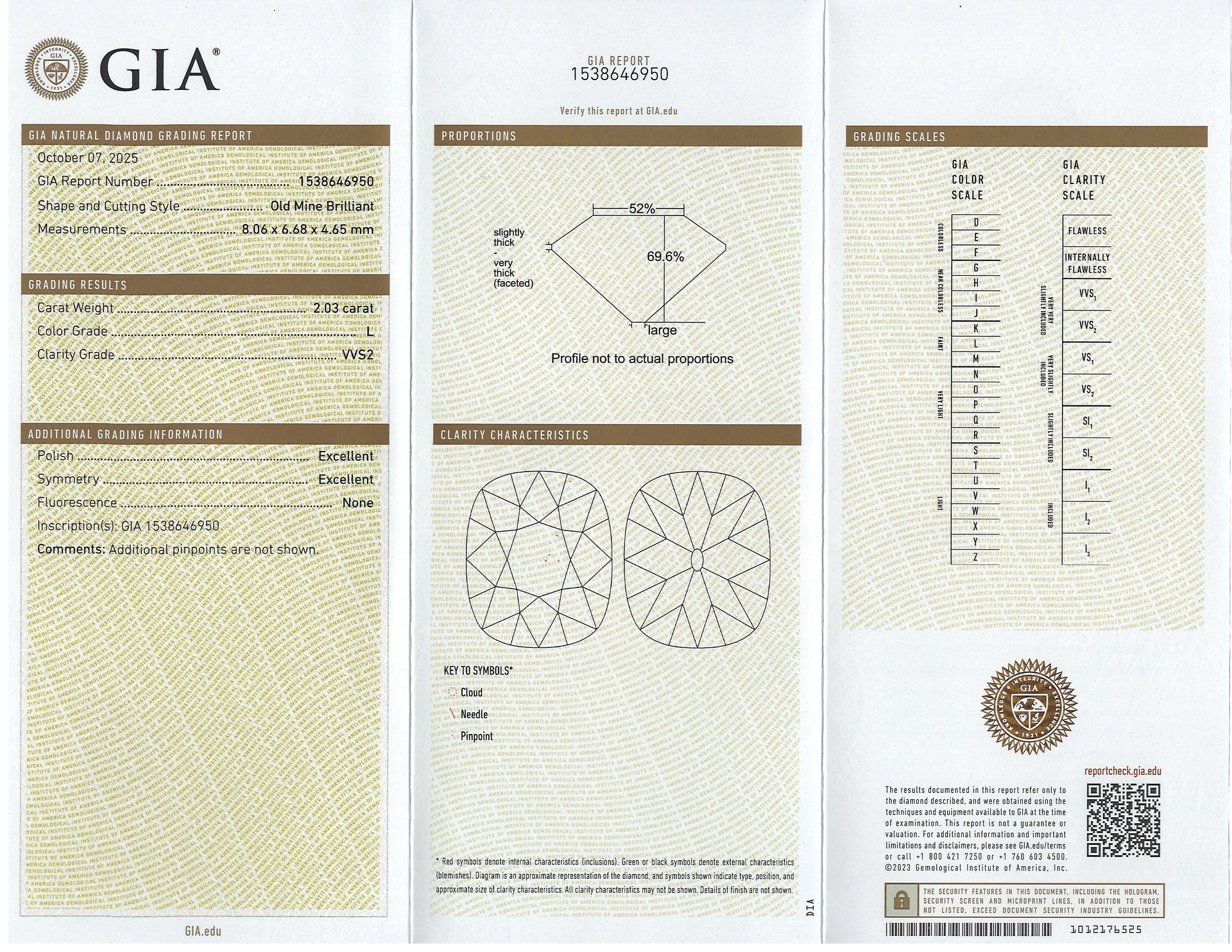 2 CARAT OLD MINE CUT DIAMOND GIA CERTIFIED L VVS2 ELONGATED CUSHION BRILLIANT