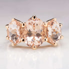 4.5ct MORGANITE 3 STONE RING OVAL CUT SHAPE PINK PEACH 14K ROSE GOLD RIGHT HAND