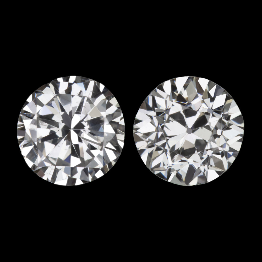 0.75c OLD EUROPEAN CUT DIAMOND STUD EARRINGS F-G SI VINTAGE MATCHING PAIR ESTATE