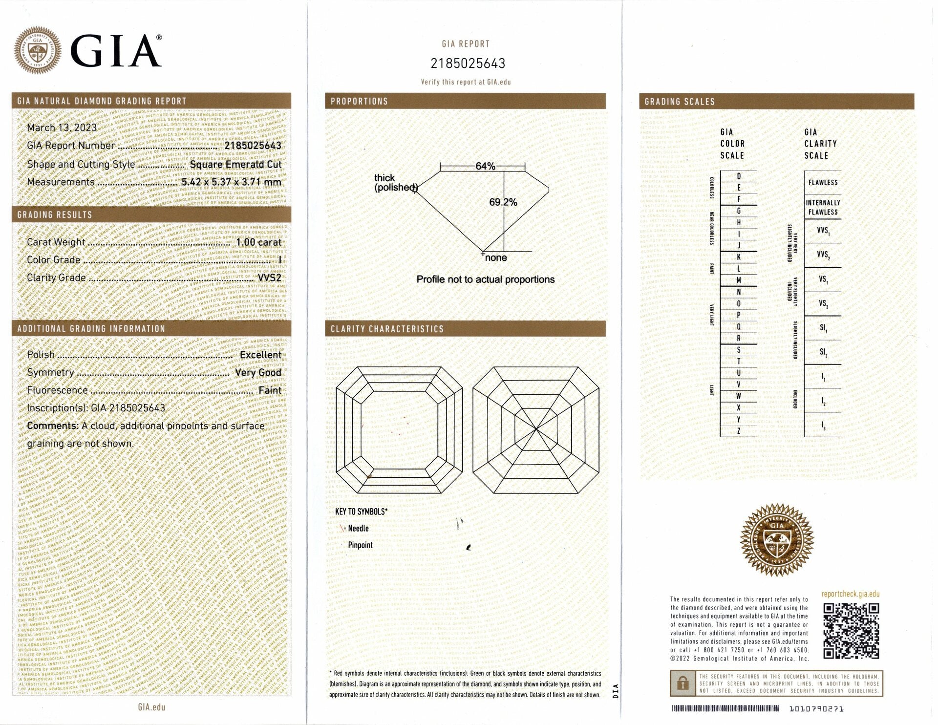 1 CARAT ASSCHER CUT DIAMOND GIA CERTIFIED I VVS2 LOOSE NATURAL SQUARE STEP CUT