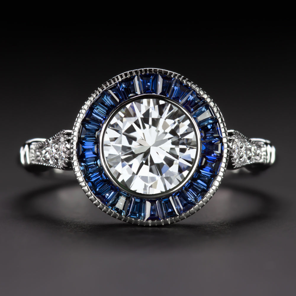 1 CARAT DIAMOND SAPPHIRE ENGAGEMENT RING GIA CERTIFIED H VVS2 HALO VINTAGE STYLE