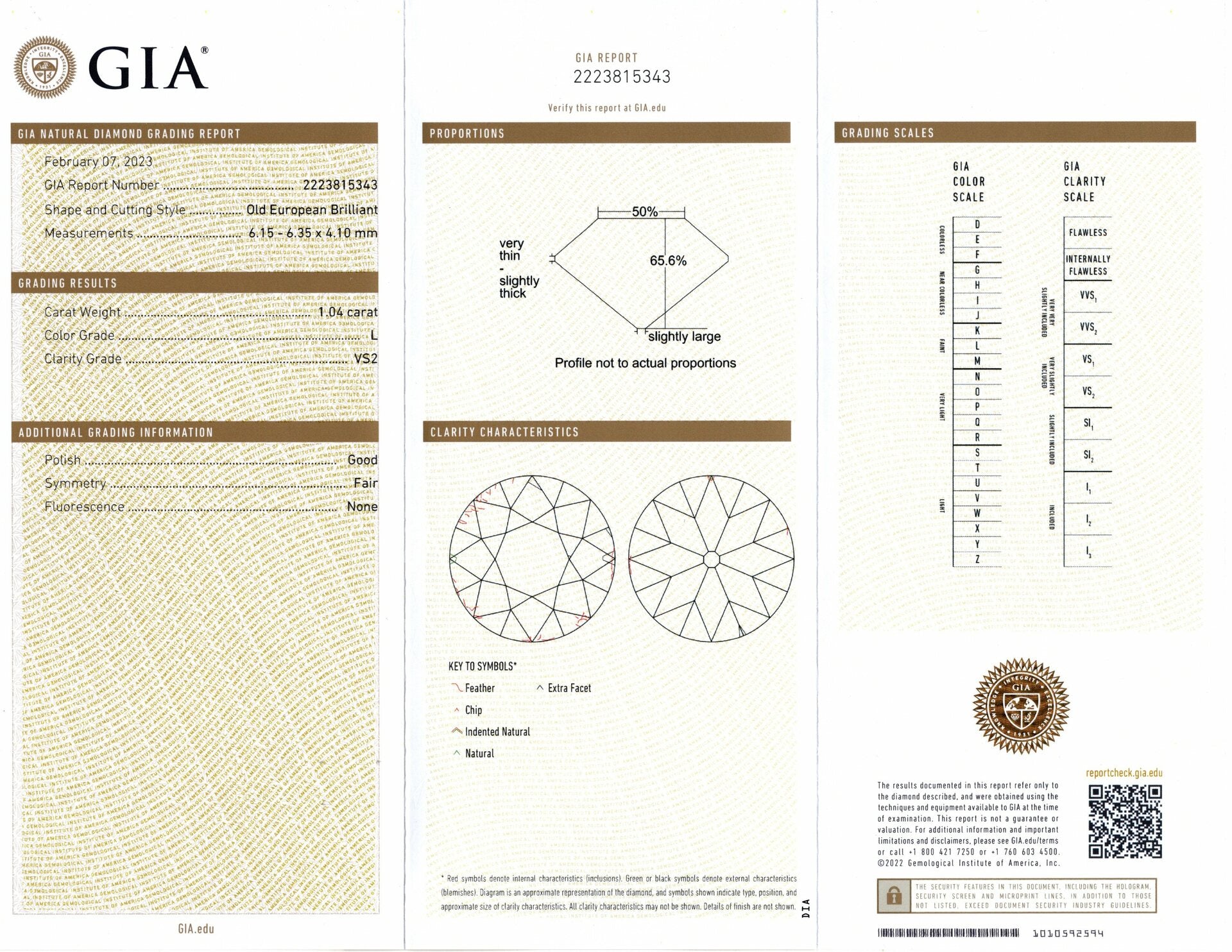 1ct OLD EUROPEAN CUT DIAMOND GIA CERTIFIED L VS2 VINTAGE LOOSE NATURAL ESTATE