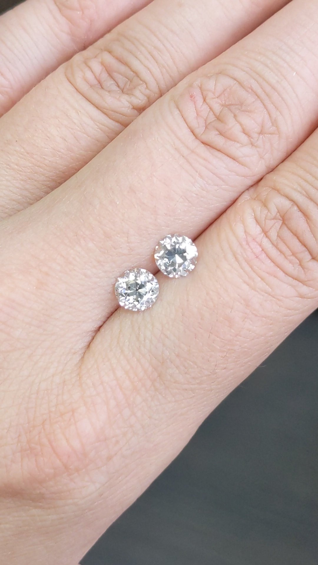 The diamonds are both certified by GIA, the world’s premier gemological authority. Under GIA’s rigorous standards, the diamonds are exceptionally clean, receiving a grade of SI2 and SI2 for clarity. The few inclusions are too small to see with the naked eye! The diamonds each face up beautifully white, receiving a grade of H and I for color. As old European cut diamonds, these stones have wide hand cut facets which return exceptionally big and bright sparkle as well as captivating flashes of colorful fire. Since Old European cuts were all cut by hand and vary more than modern diamonds, it is truly rare and unique to find a great pair like this! Absolutely one of a kind and full of history, you will fall in love with the charm and sophistication of these antique beauties!