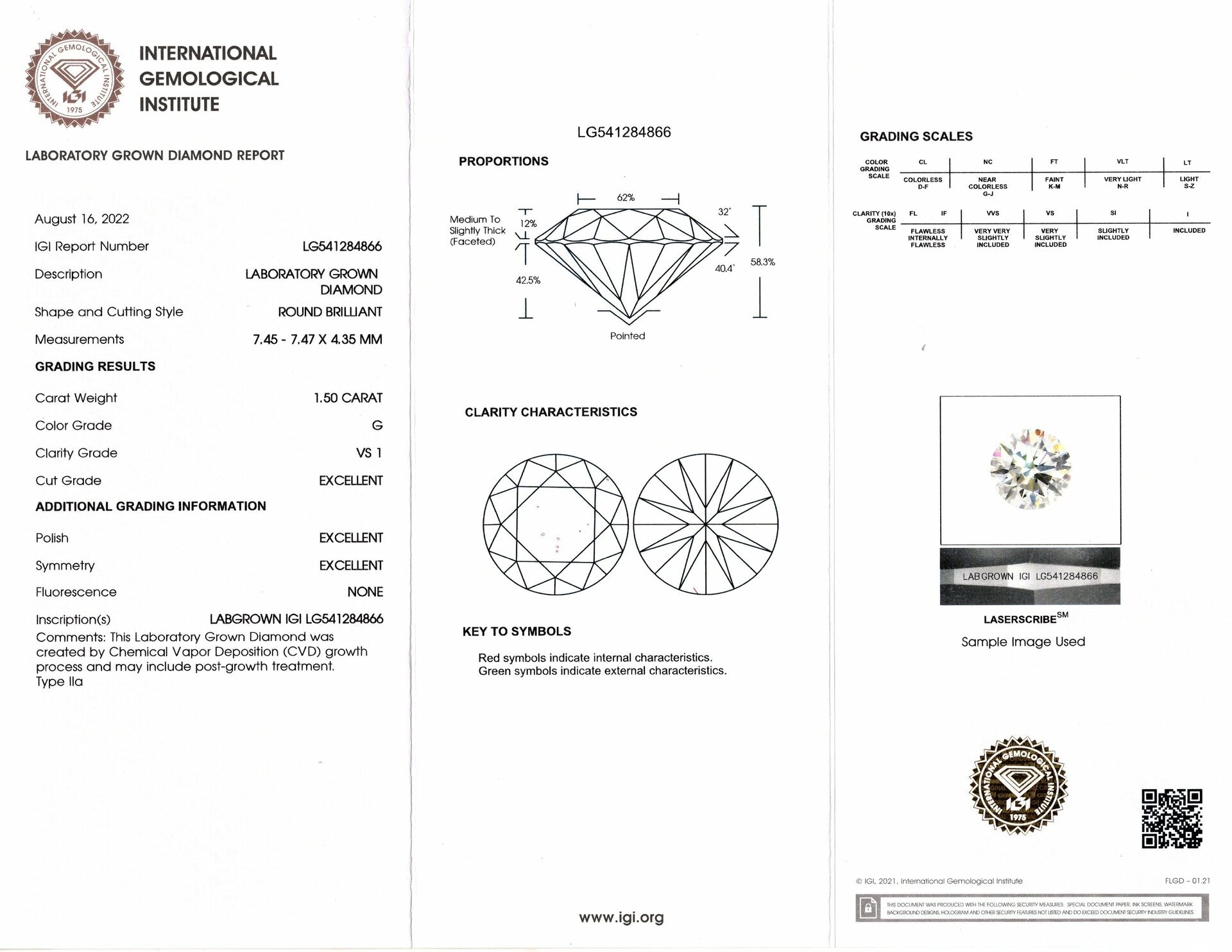 - Bright white color and excellent clarity with grades of G VS1