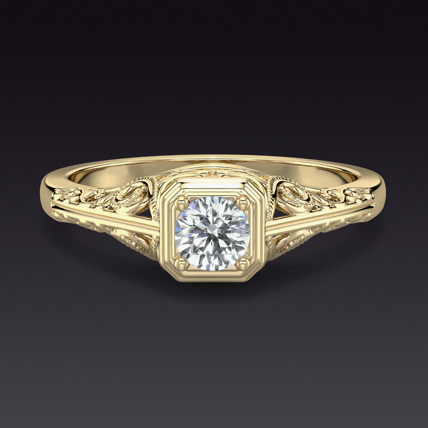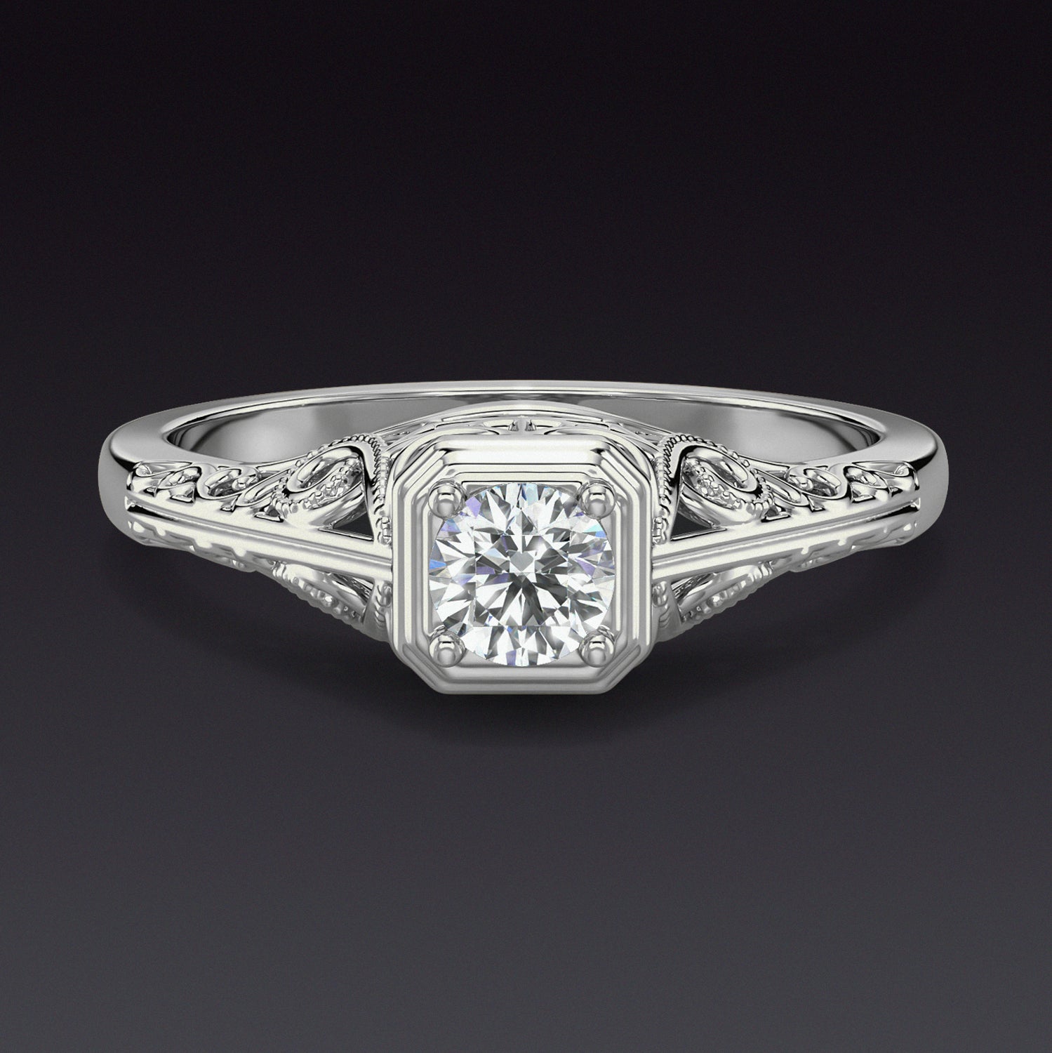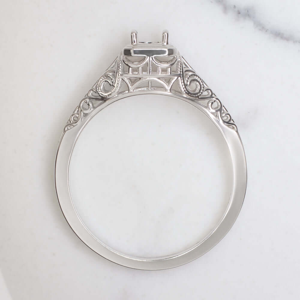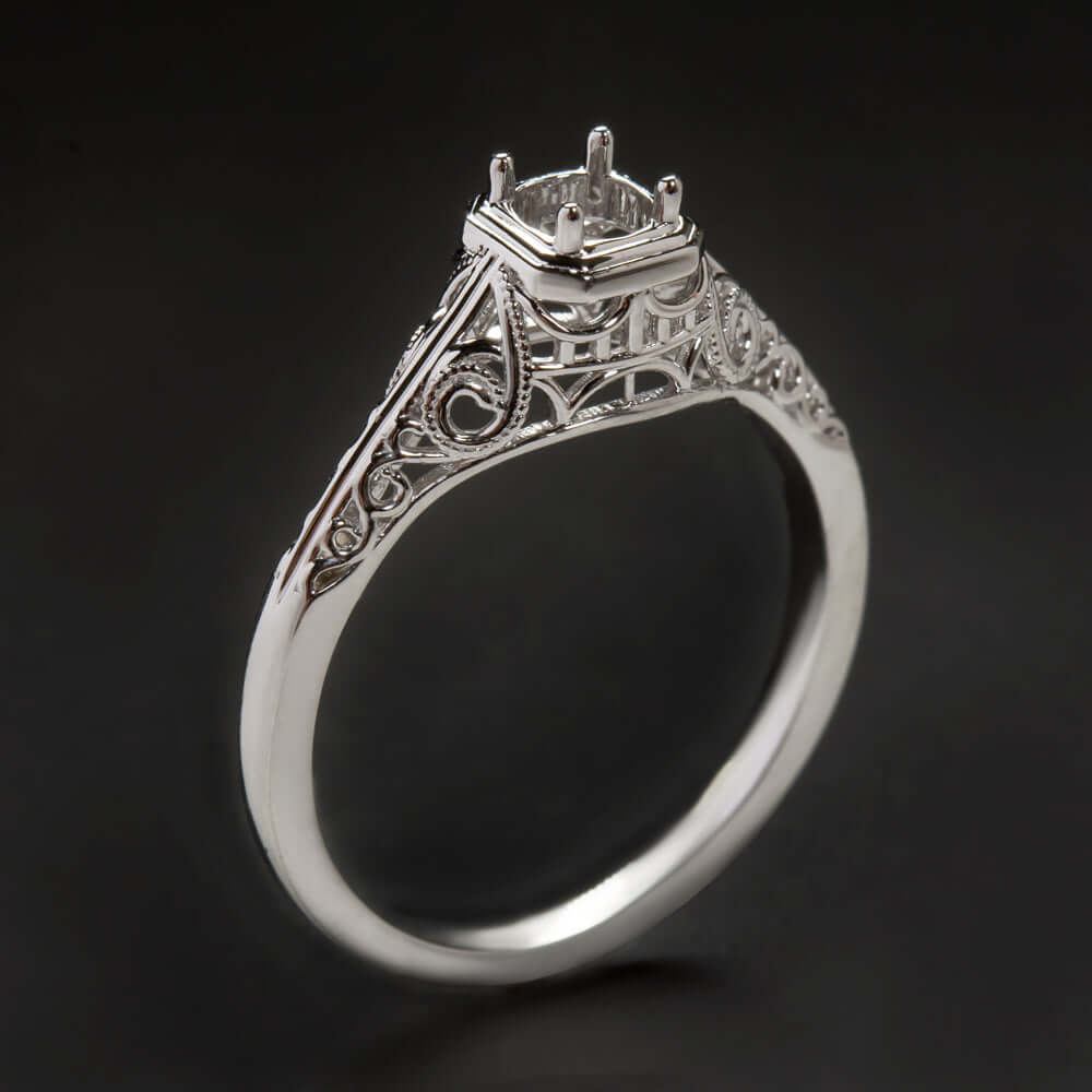 4mm ENGAGEMENT RING SETTING VINTAGE STYLE MOUNT WHITE GOLD ART DECO SOLITAIRE