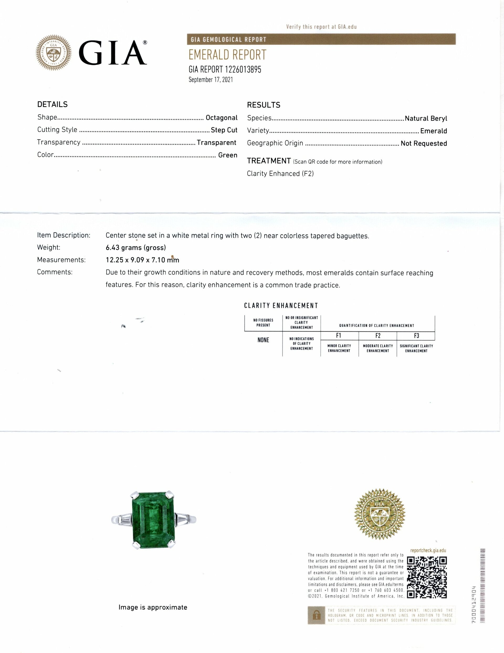 6.07ct EMERALD DIAMOND COCKTAIL RING GIA CERTIFIED PLATINUM NATURAL 3 STONE 6ct